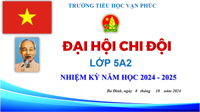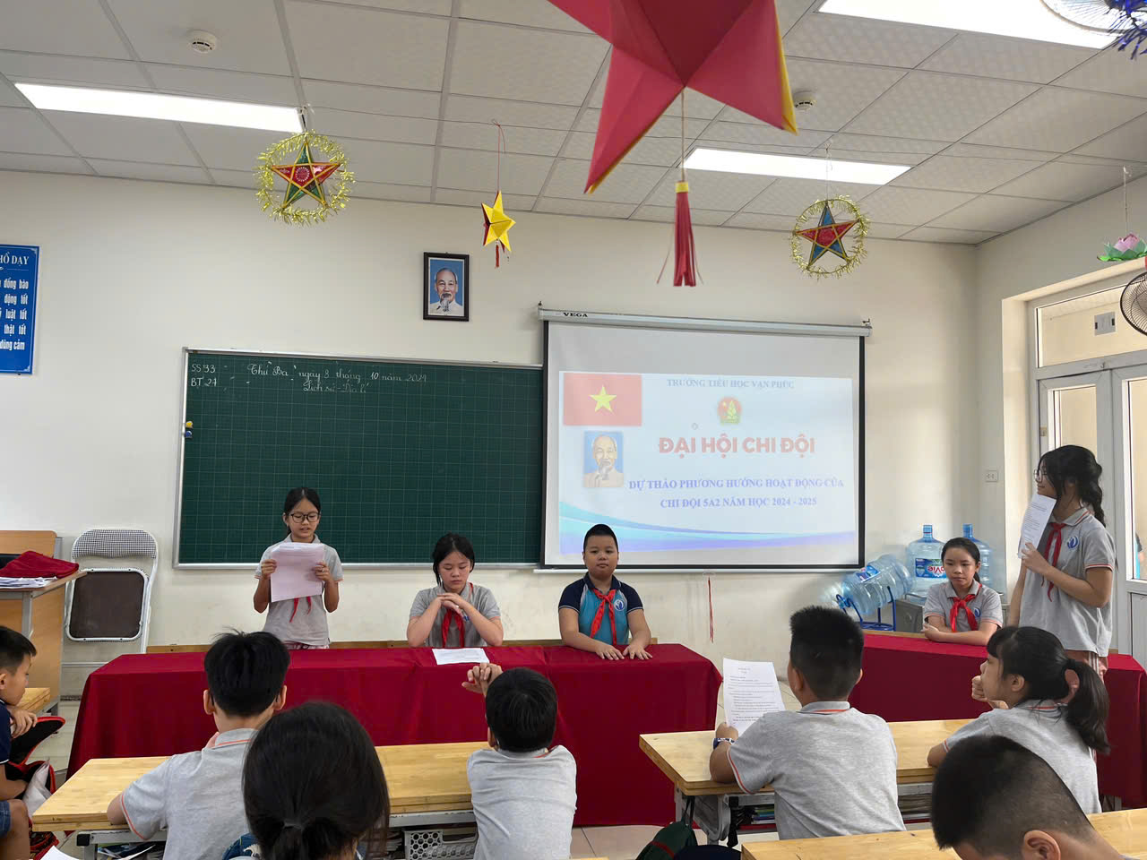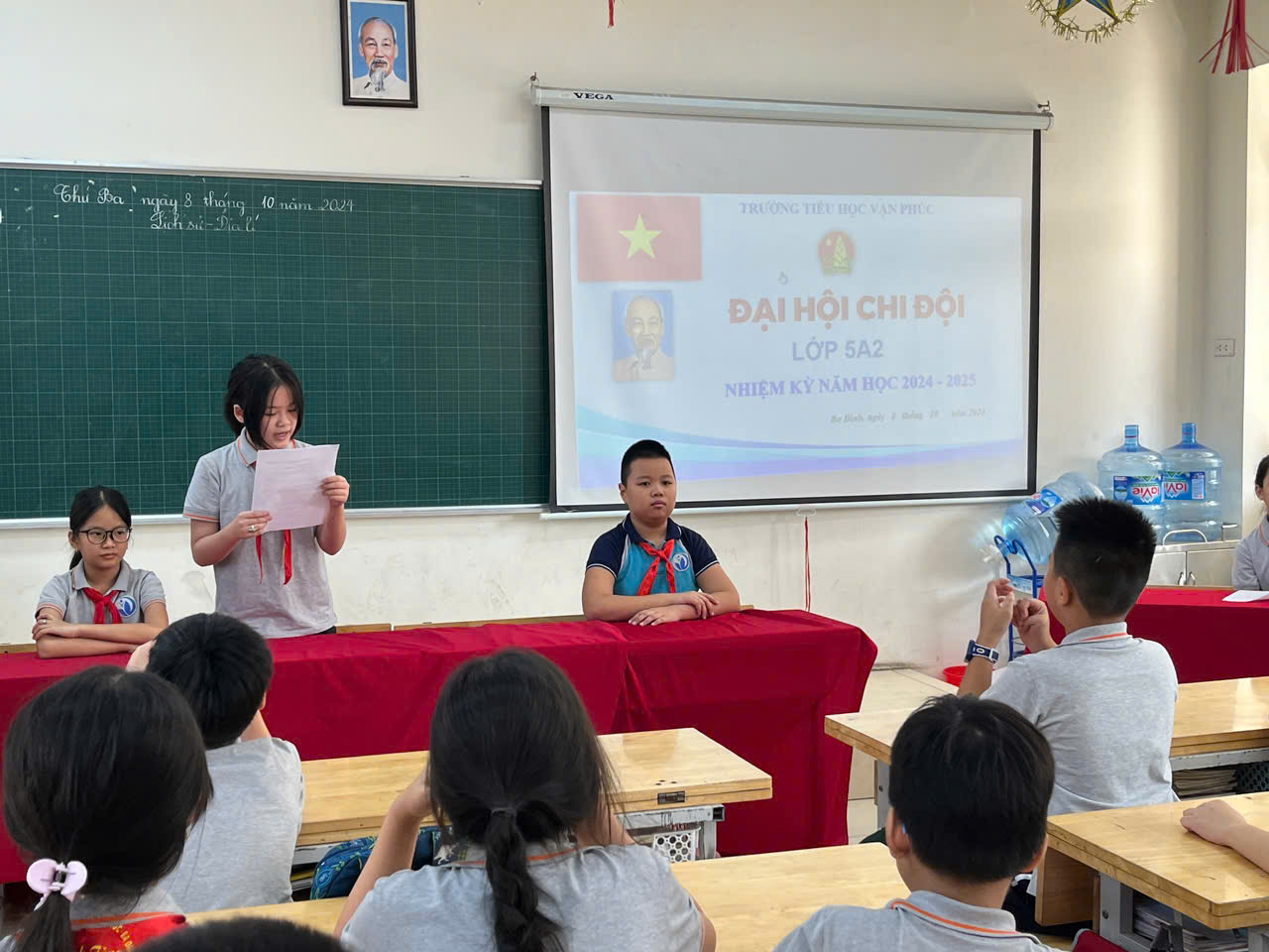 Được sự đồng ý của Ban Chỉ huy Liên đội Trường Tiểu học Vạn Phúc, chiều ngày 08/10/2024, Chi đội lớp 5A2 đã tổ chức Đại hội Chi đội năm học 2024-2025. Đại hội nhằm tổng kết và đánh giá công tác đội năm học 2023-2024 và xây dựng phương hướng, chương trình công tác Đội năm học 2024-2025.