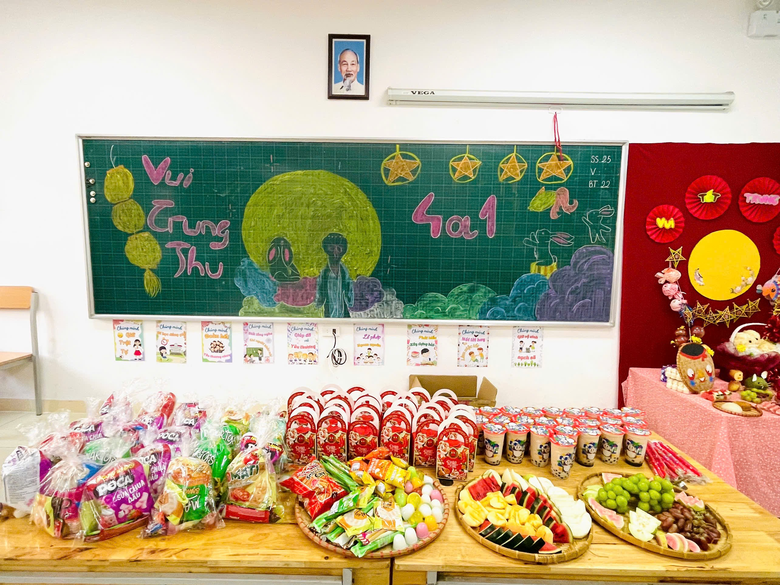 Mâm cỗ Trung thu rực rỡ, ấm áp tình thân của lớp 4A1
