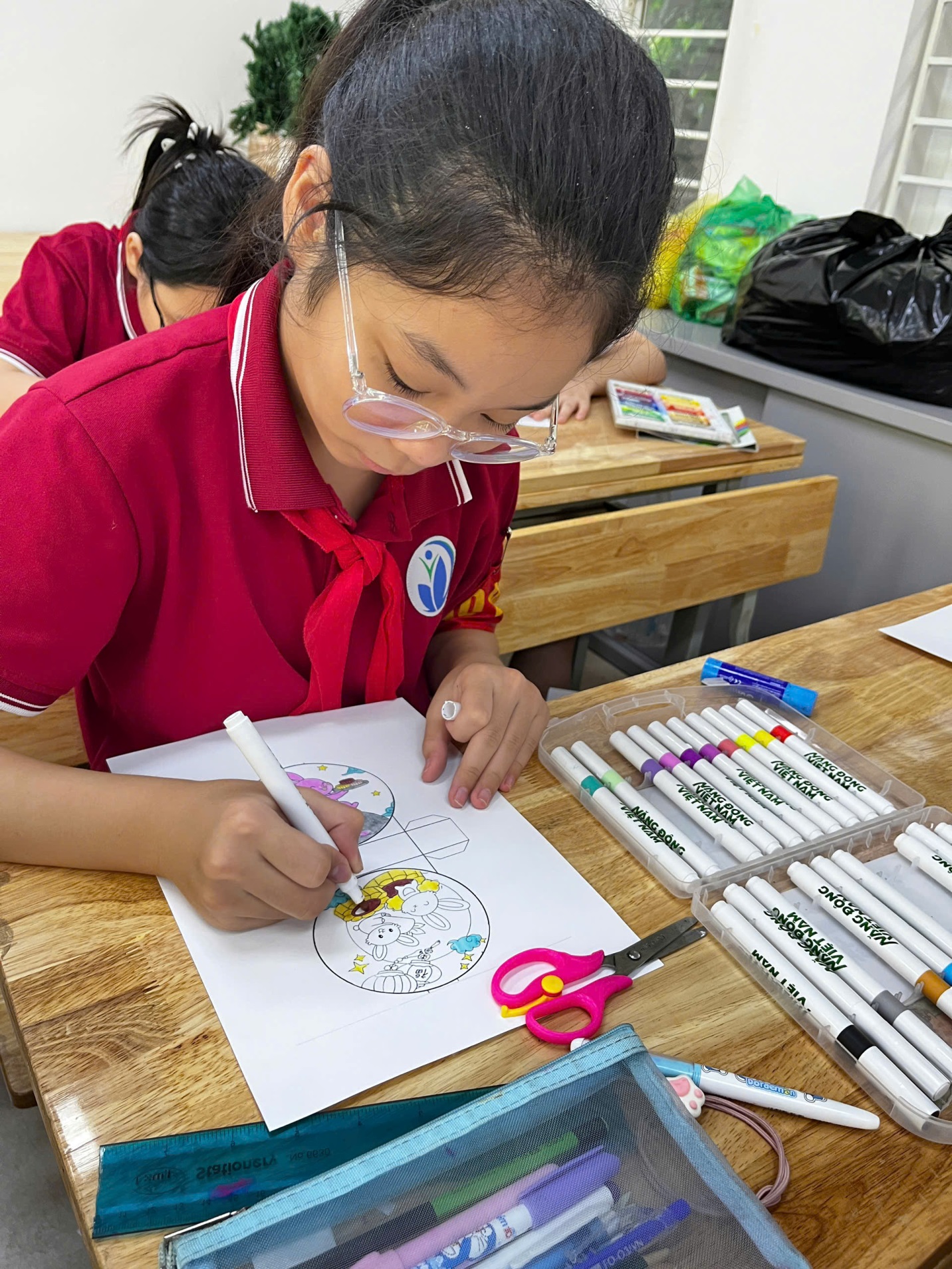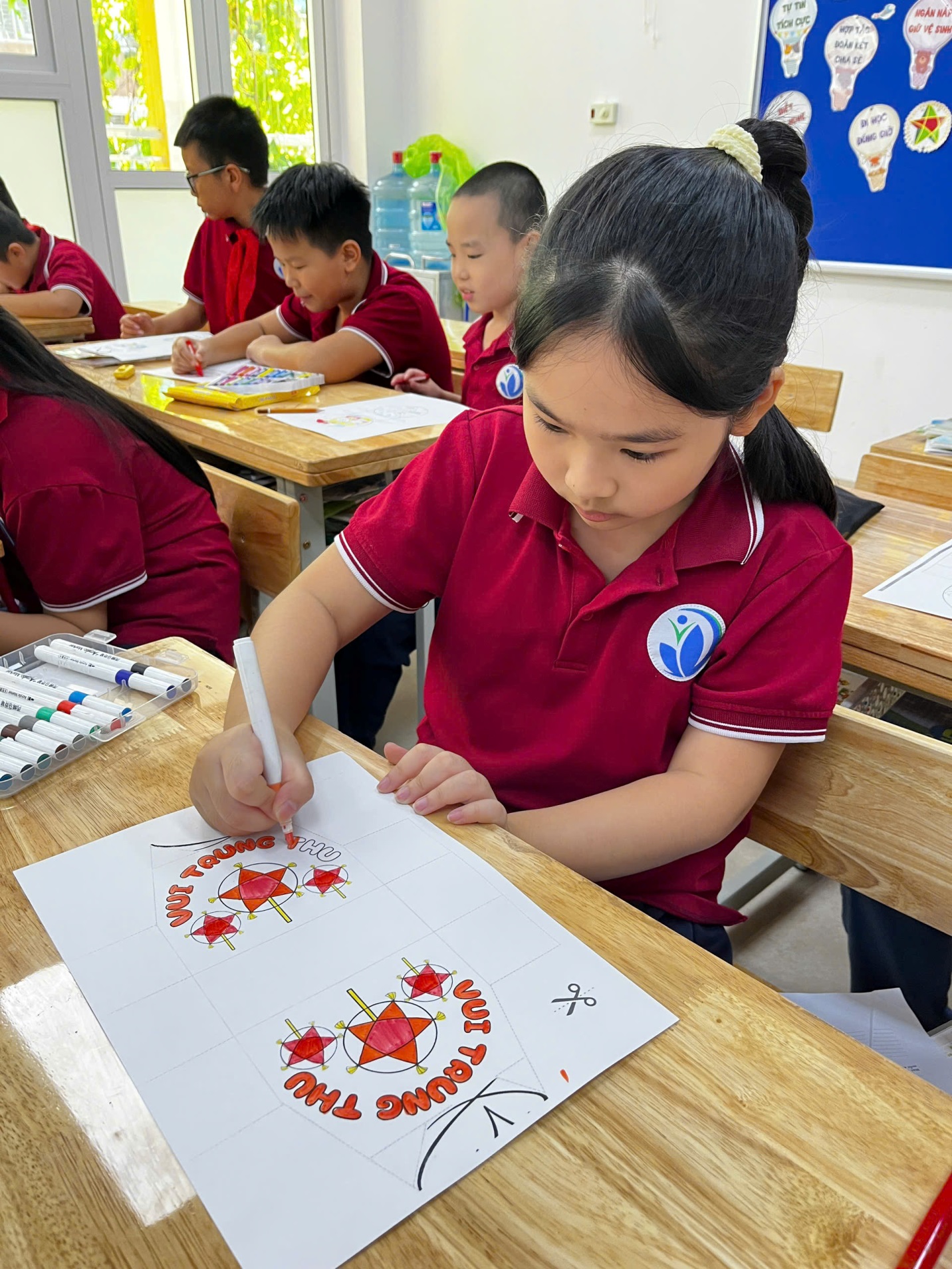 Điểm nhấn đặc biệt của buổi vui hội là hoạt động làm lồng đèn Trung thu. Các bạn nhỏ say sưa, chăm chú từng chi tiết, để trí tưởng tượng và bàn tay khéo léo của mình biến những vật liệu quen thuộc thành những sản phẩm thật sinh động. Mỗi sản phẩm là một ý tưởng riêng, thể hiện sự sáng tạo, niềm vui và tình yêu của các em dành cho ngày Tết thiếu nhi lớn nhất trong năm.