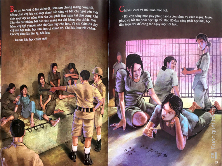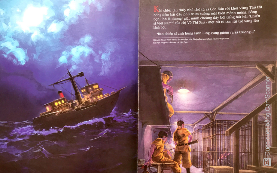 Tranh minh họa đã góp vào câu chuyện nội dung hình ảnh để người đọc hình dung được rõ nét. Các cảnh toàn, cảnh trung đến đặc tả được sử dụng nhịp nhàng uyển chuyển. Góc nhìn từ trên xuống nhấn mạnh vào sự ngột ngạt khắc nghiệt của nhà tù Côn Đảo, góc nhìn từ dưới lên cho thấy tầm vóc tinh thần bất khuất của chị Sáu và những người đồng chí đến những trận đánh táo bạo của chị cùng đồng đội, cả những giây phút đối mặt với kẻ thù trong nhà tù thực dân đế quốc, đó là những giây phút hào hùng nhất trong cuộc đời của chị trước lúc hy sinh, là những huyền thoại trong sáng đầy tính nhân bản kể từ khi chị ngã xuống đến nay.