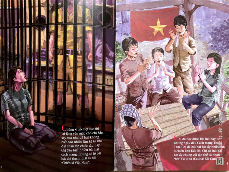 Họa sĩ Bùi Việt Thanh đã sử dụng triệt để thủ pháp điện ảnh để tạo nhịp điệu sống động và góc nhìn hiện đại khi miêu tả câu chuyện. Ở bức tranh nào, hình ảnh của chị Sáu cũng nổi bật với đôi mắt sáng cương nghị. Đó là kết quả của quá trình nghiên cứu rất kĩ nhân vật, bối cảnh và câu chuyện của người họa sĩ.