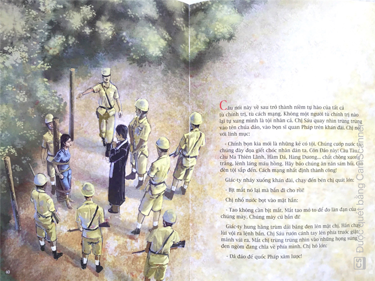 Cuốn sách có sẵn ở thư viện trường Tiểu học Tràng An, mời các bạn độc giả tìm đọc. Và sau đây, xin mời các bạn độc giả cùng lắng nghe kể câu chuyện về chị Võ Thị Sáu – Một tấm gương sáng trong và bất khuất, tiêu biểu cho tuổi trẻ Việt Nam trong công cuộc đấu tranh giành độc lập chủ quyền dân tộc.