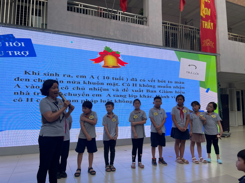 Với tinh thần học hỏi, tìm hiểu và tiếp thu những điều bổ ích thông qua tài liệu “Luật trẻ em” được đăng tải trên trang web nhà trường, 100 thí sinh có những câu trả lời chính xác về Luật trẻ em đồng thời sân chơi đã mang đến cho các bạn học sinh những trải nghiệm cũng như niềm vui, sự háo hức từ những phút giây đầu tiên.