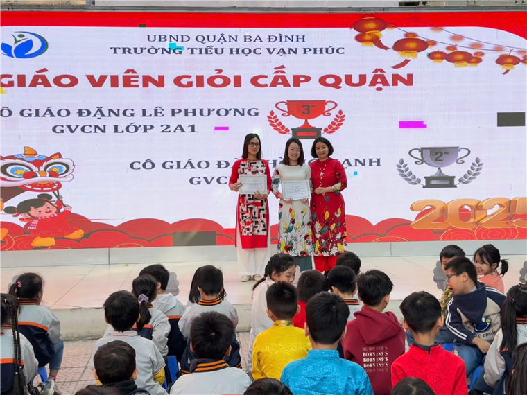 Cô giáo Đặng Lê Phương đạt Giải Ba cuộc thi Giáo viên giỏi cấp Quận và cô giáo Đào Hồng Hạnh đạt Giải Nhì cuộc thi Giáo viên chủ nhiệm giỏi cấp Quận