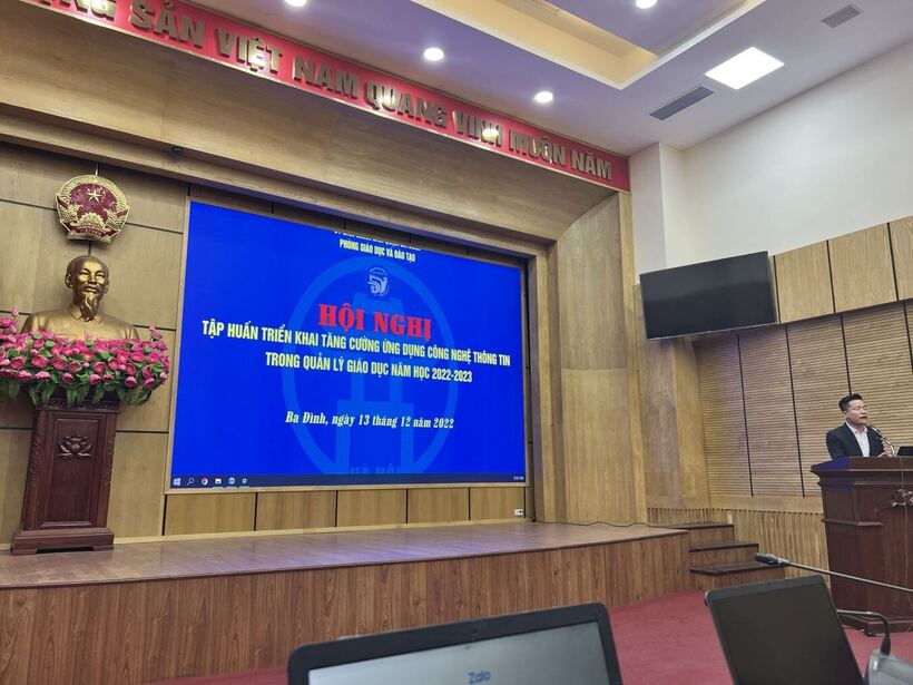 Tại hội nghị, ông Lê Đức Thuận - Trưởng Phòng GDĐT quận đã hướng dẫn các trường phương thức quản lý và sử dụng hòm thư công vụ (@badinhedu.vn; Quản lý, cài đặt và sử dụng danh bạ theo các “nhóm”; Quản lý, cài đặt và sử dụng văn bản đến và văn bản đi theo các “nhãn”; Thiết lập và sử dụng lịch trực tuyến: Cài đặt, phân quyền lịch cho hội đồng sư phạm, liên tịch và các tổ, nhóm chuyên môn của nhà trường; Chỉnh sửa thể thức văn bản theo quy định; Giới thiệu về chữ ký số và quy trình ký số, trình ký số.