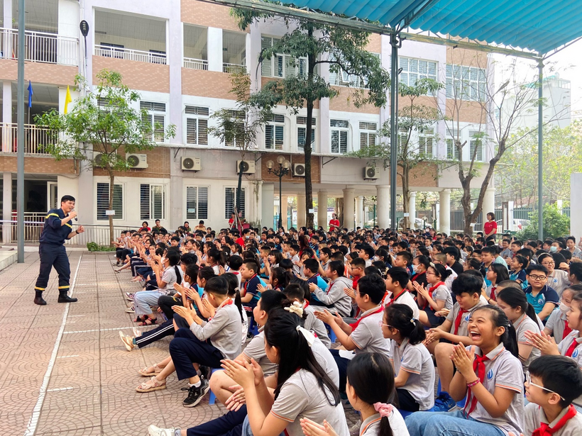Đến với chương trình có sự tham gia của các cấp Lãnh đạo Đội Cảnh sát PCCC và cứu nạn cứu hộ - Công an quận Ba Đình, Ban giám hiệu, cùng toàn thể giáo viên, nhân viên và các em học sinh.