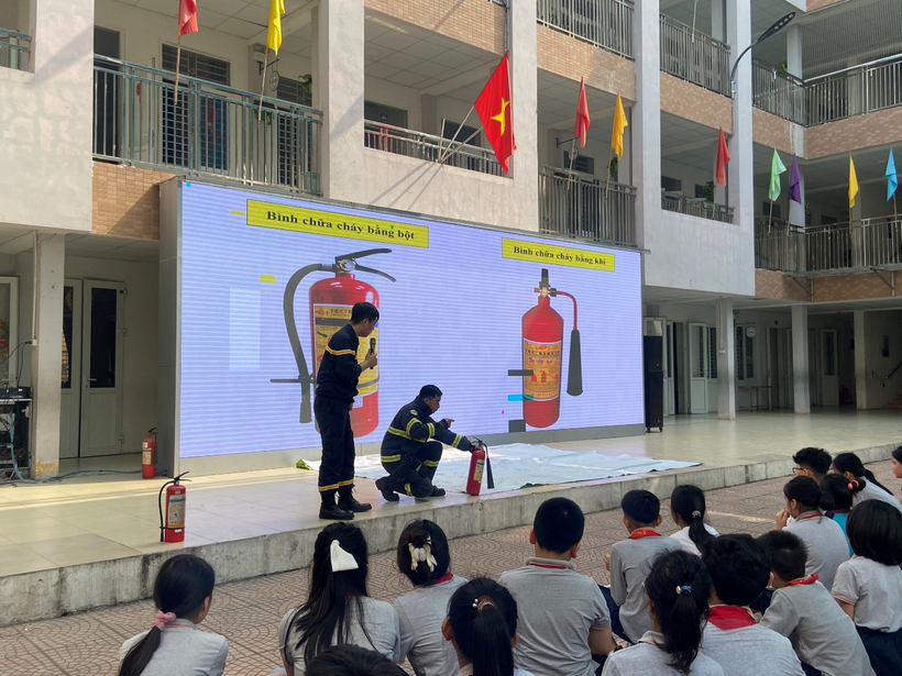 Trong buổi tập huấn, các cán bộ, giáo viên, nhân viên nhà trường, đặc biệt là các con học sinh đã được hướng dẫn cách xử lý tình hống khi gặp đám cháy, kỹ năng thoát hiểm khi trường học có hoả hoạn, cách sử dụng bình cứu hoả để dập lửa. Với cách tiếp cận vấn đề dí dỏm, lôi cuốn và các kiến thức thiết thực của đồng chí …., các con HS đã rất hào hứng và say mê tham gia buổi tập huấn, cập nhật các kiến thức PCCC và thoát hiểm khi gặp hoả hoạn.