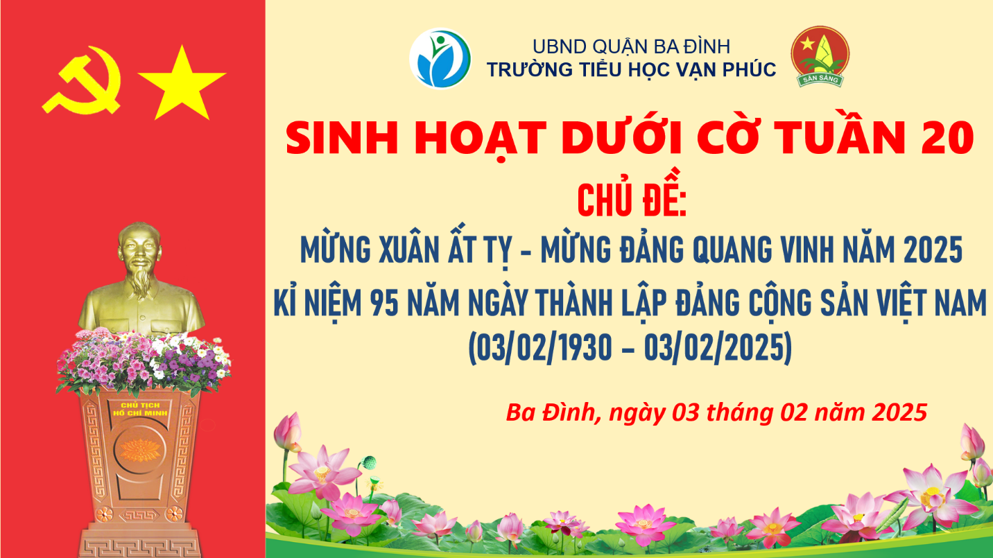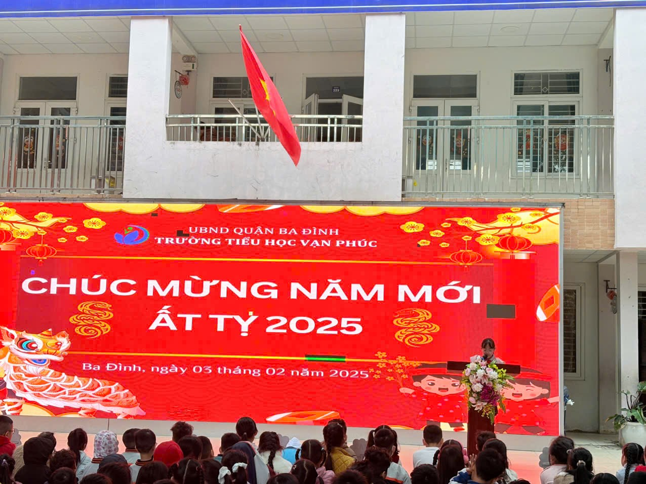 Hòa trong không khí vui tươi, phấn khởi đón xuân 2025, sáng ngày 03/02/2025 (Mùng 6 Tết), Trường Tiểu học Vạn Phúc đã tổ chức thành công tiết Sinh hoạt dưới cờ Chào mừng kỷ niệm 95 năm Ngày thành lập Đảng Cộng sản Việt Nam (03/02/1930 - 03/02/2025) và chúc Tết đầu Xuân Ất Tỵ.