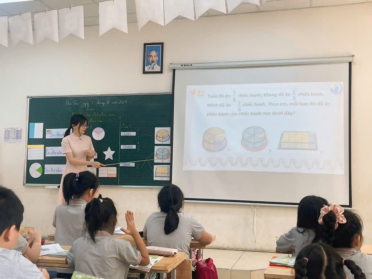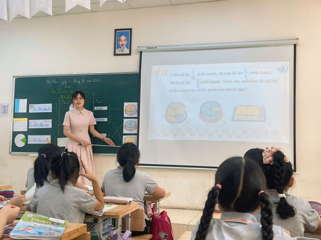 Cô giáo Vũ Linh Hương với tiết dạy Toán bài “Một phần ba - Một phần năm - Một phần sáu”