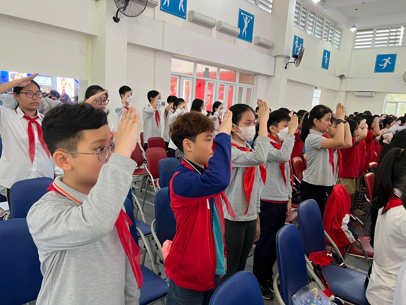 Lớp tập huấn có sự tham gia của 32 đồng chí giáo viên tổng phụ trách và gần 200 em học sinh là đại diện BCH Liên đội của các trường TH và THCS trên địa bàn quận.