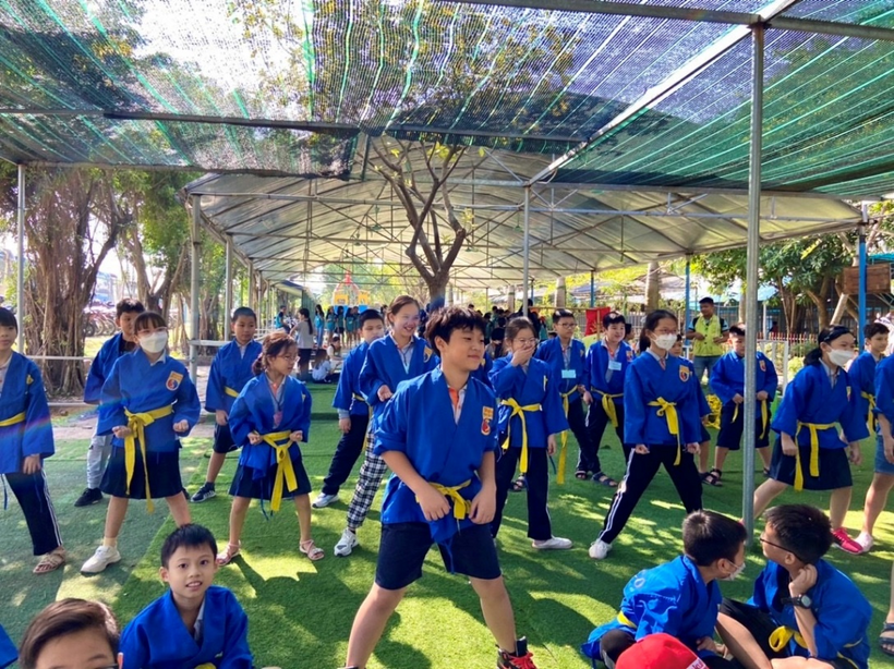 Đóng vai võ sĩ Vovinam rèn luyện kỹ năng tự vệ.