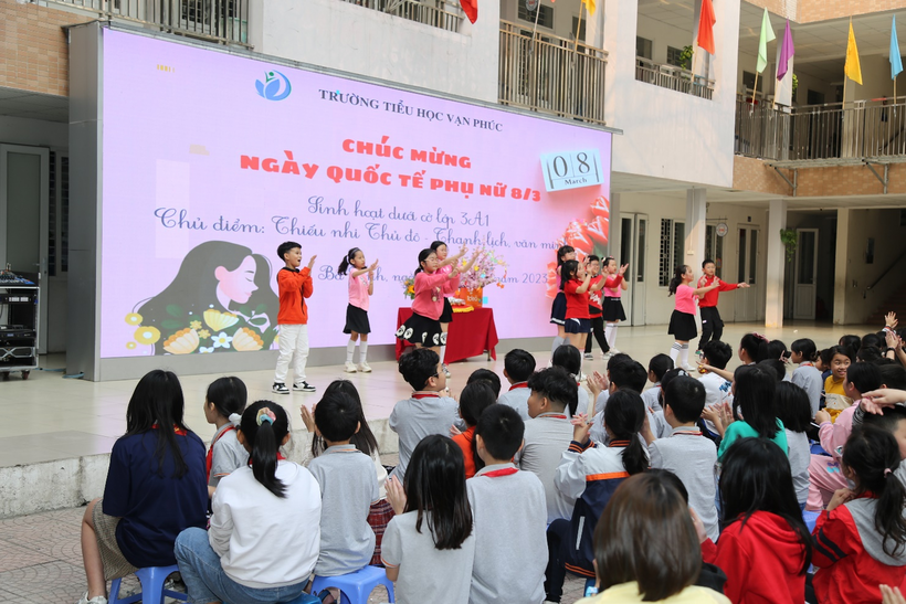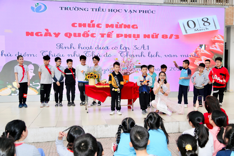Hòa trong không khí vui vẻ, phấn khởi chào mừng Ngày Quốc tế Phụ nữ, Trường Tiểu học Vạn Phúc đã tổ chức chương trình ý nghĩa chào mừng ngày 8/3 như một món quà gửi tới các các bà, các mẹ, các cô giáo và em học sinh nữ nhà trường.