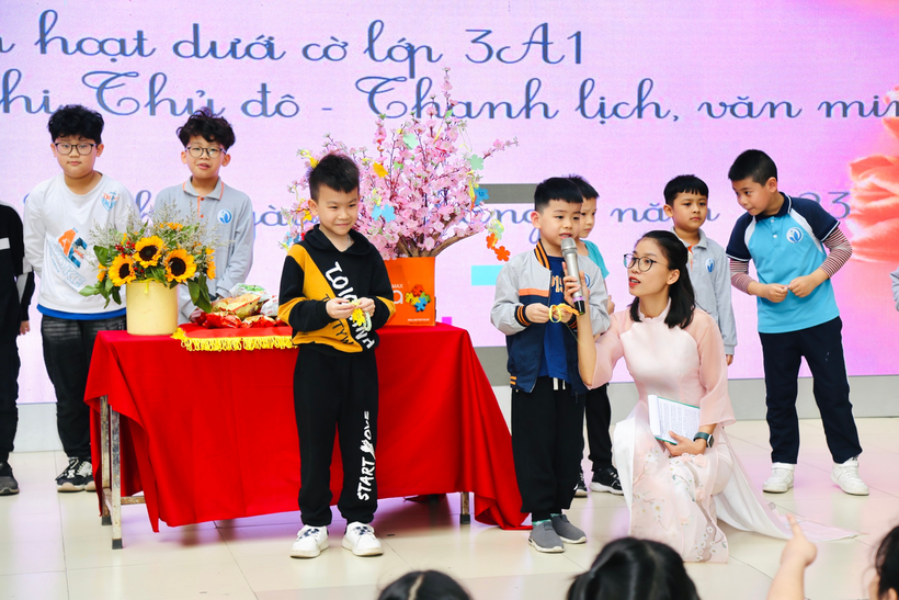 Mỗi lớp chọn cử một bạn nam lên sân khấu bốc thăm để trả lời câu hỏi, với mỗi câu hỏi đúng sẽ nhận được 1 phần quà cho riêng mình và 1 bông hoa mang xuống tặng cho cô giáo chủ nhiệm của mình. Mỗi câu hỏi là một khám phá về ý nghĩa hay thể hiện lời chúc, bài thơ, bài hát về ngày 8/3. Các cô cảm thấy rất hạnh phúc và trân trọng những tình cảm chân thành của các bạn nhỏ dành tặng.