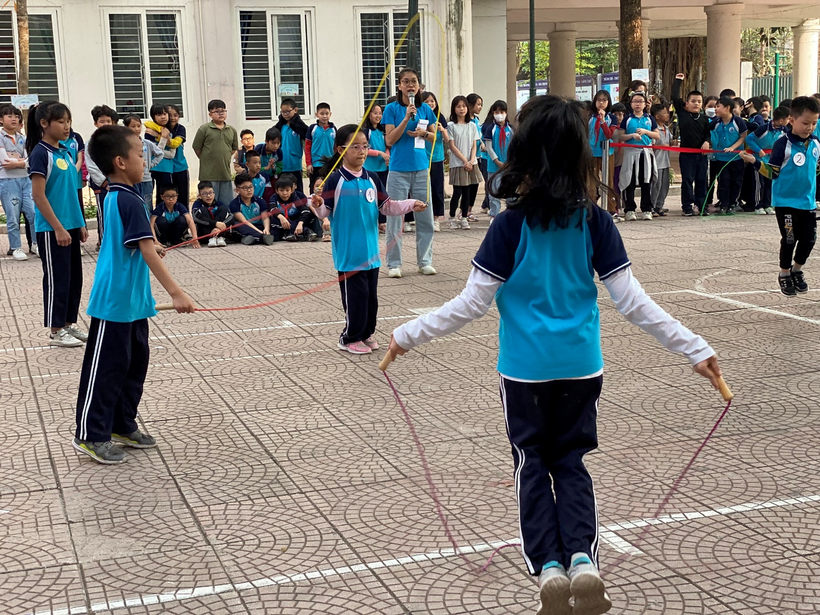 Các thí sinh Khối 2 tham gia thi đấu nhảy dây