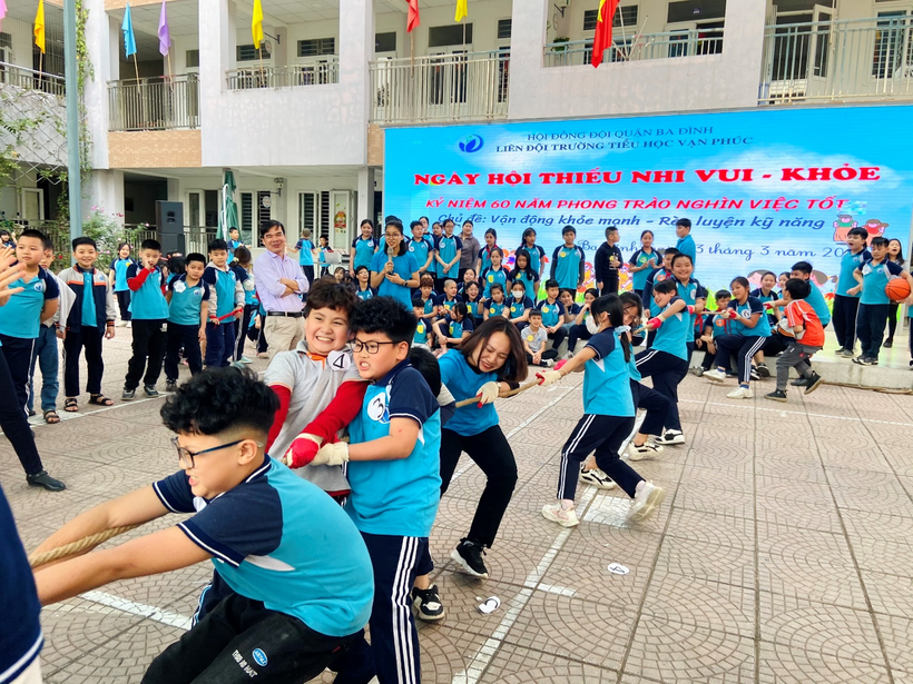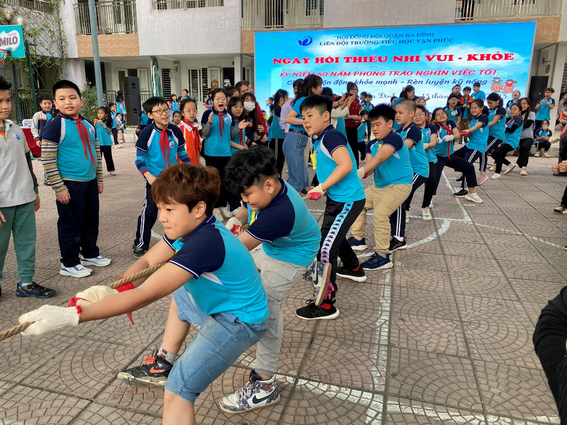 Để tạo nên không khí thi đua thể dục thể thao sôi nổi giữa các khối lớp, ban phụ trách Đội đã phát động và triển khai “Ngày hội thiếu nhi vui-khỏe” ở tất cả các khối lớp và nhận được sự ủng hộ, hưởng ứng của toàn thể cán bộ giáo viên và học sinh nhà trường. Theo hướng dẫn của các giáo viên trong tổ Thể dục và các thầy cô giáo chủ nhiệm, mỗi lớp đã lựa chọn ra những vận động viên xuất sắc nhất, tiến hành tập luyện và tham gia thi đấu các môn do Ban tổ chức quy định.