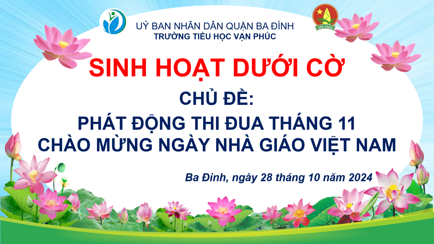Sáng ngày 28/10/2024, Liên đội Trường Tiểu học Vạn Phúc phát động thi đua tháng 11 - Chào mừng Ngày nhà giáo Việt Nam 20/11 nhằm tôn vinh, tri ân các thầy cô giáo và những người đang cống hiến với sự nghiệp trồng người.