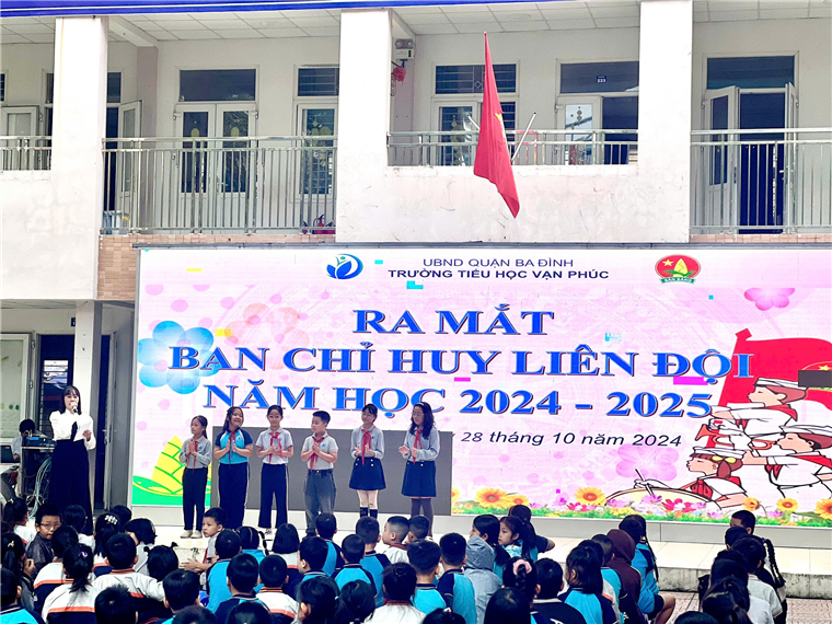 Đặc biệt, trong không khí trang trọng và phấn khởi của tiết sinh hoạt, Ban chỉ huy Liên đội năm học 2024-2025 chính thức ra mắt với học sinh toàn trường. Đây là những bạn học sinh xuất sắc, nhiệt huyết, đã được tín nhiệm bầu chọn để dẫn dắt phong trào Đội trong trường, cùng nhau xây dựng một môi trường học tập vui vẻ, kỷ luật và đoàn kết trong năm học mới.