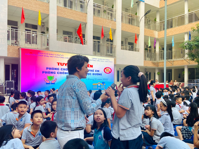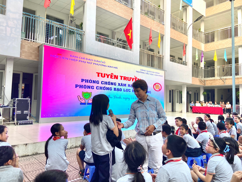 Thời gian gần đây, tình trạng xâm hại trẻ em diễn biến phức tạp, xuất hiện nhiều vụ việc ở mức độ nghiêm trọng. Trong đó, xâm hại tình dục chiếm tỉ lệ cao nhất trong các hình thức xâm hại trẻ em. Xâm hại, bạo lực trẻ em đang là vấn nạn không chỉ để lại hậu quả nặng nề với trẻ em, mà còn ảnh hưởng đến gia đình, cộng đồng và xã hội. Với mục đích cung cấp cho học sinh kĩ năng phòng, chống xâm hại trẻ em, ngày 24/10/2022, tại Trường Tiểu học Vạn Phúc, Trung tâm Y tế quận Ba Đình phối hợp với Hội Liên hiệp Phụ nữ phường Kim Mã và trường Tiểu học Vạn Phúc tổ chức buổi tuyên truyền với chủ đề: “Phòng chống xâm hại trẻ em, phòng chống bạo lực học đường”.
