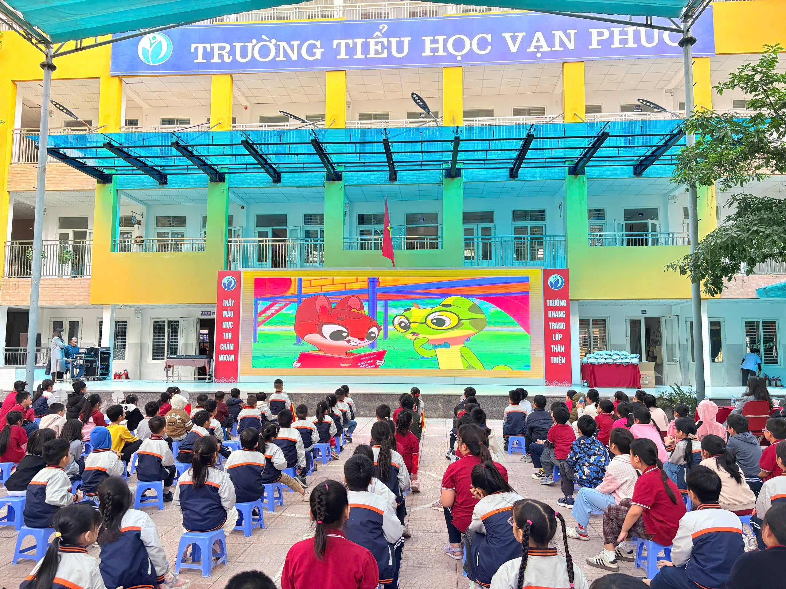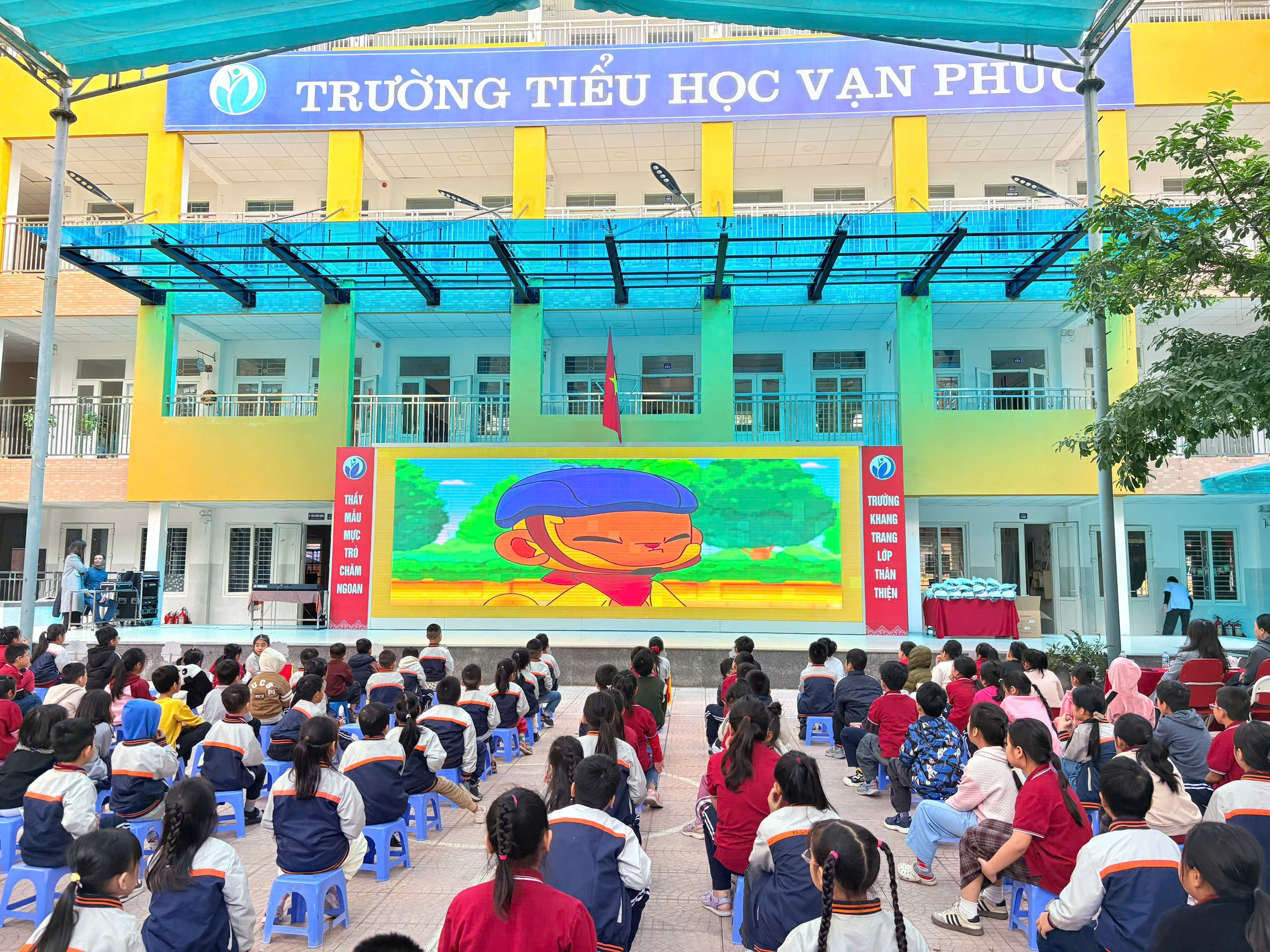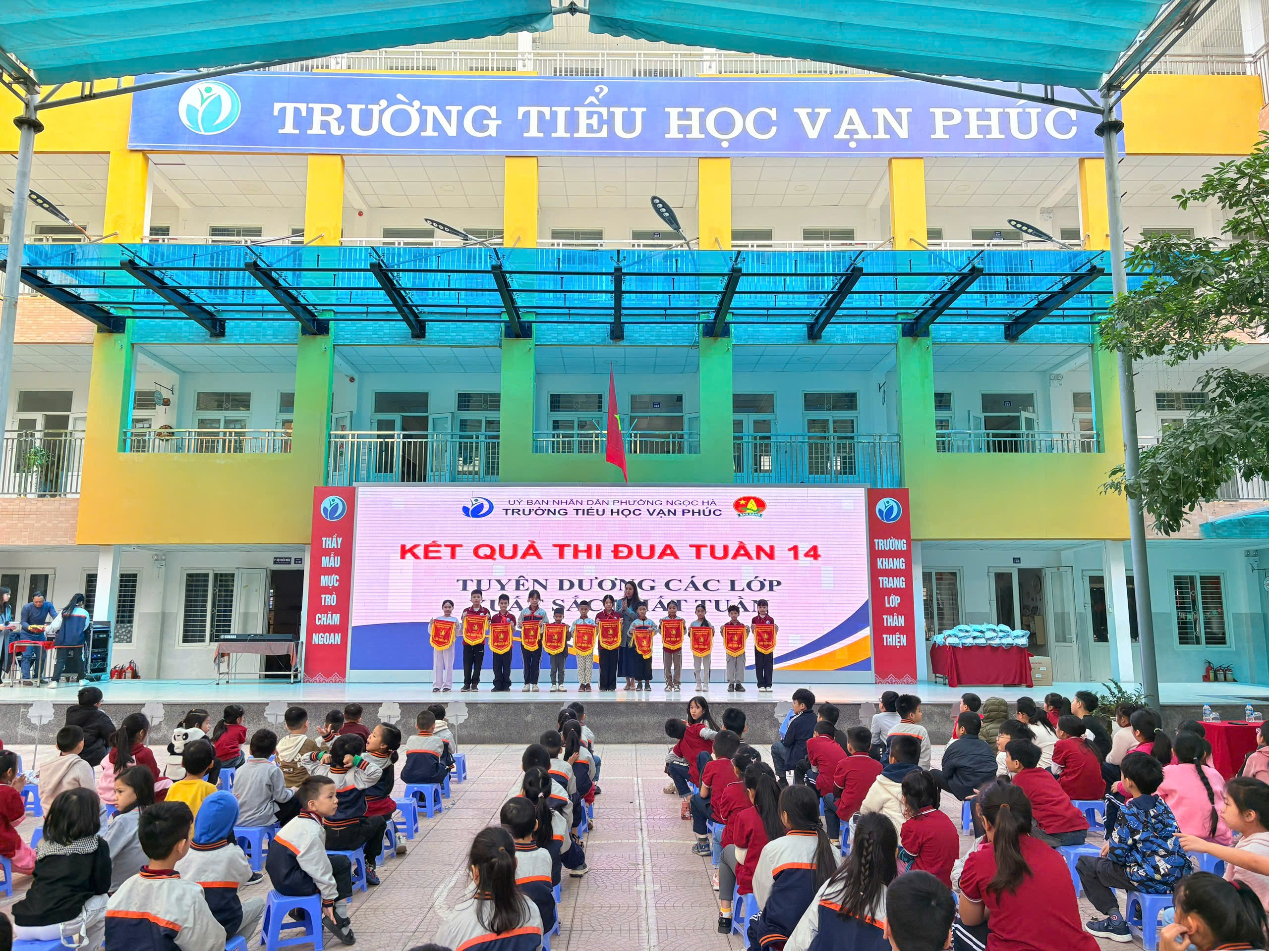Toàn thể thầy cô và học sinh Trường Tiểu học Vạn Phúc tham dự buổi Sinh hoạt dưới cờ
