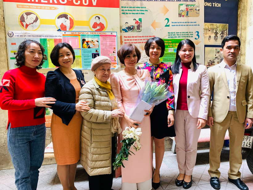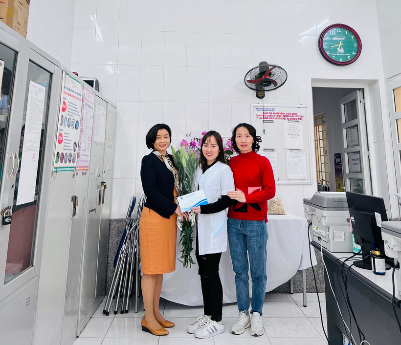 Đại diện BGH, Y tế nhà trường chúc mừng Y tế phường Đội Cấn