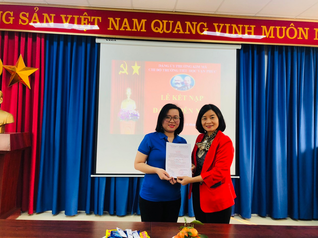 Phát triển Đảng là nhiệm vụ có ý nghĩa quan trọng trong công tác xây dựng Đảng, góp phần phát triển, nâng cao chất lượng và sức chiến đấu của tổ chức cơ sở Đảng nói chung và các cá nhân đảng viên nói riêng. Với ý nghĩa đó, được sự giúp đỡ của chi bộ trường Tiểu học Vạn Phúc và sự nỗ lực, phấn đấu của bản thân, đồng chí Nguyễn Thị Hà giáo viên chủ nhiệm lớp 5A3 đã được kết nạp vào Đảng Cộng sản Việt Nam ngày 15/01/2021.