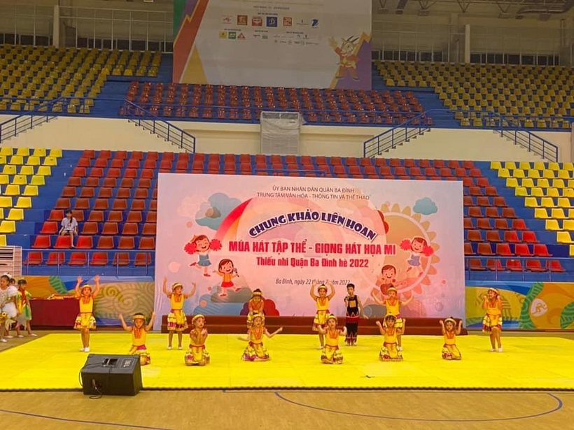 Nhằm tạo sân chơi lành mạnh và bổ ích cho các em thiếu nhi trong những ngày hè, giúp các em có dịp thể hiện năng khiếu nghệ thuật của mình, qua đó phát hiện và bồi dưỡng những mầm non nghệ thuật để trở thành hạt nhân văn nghệ của cơ sở nói riêng và phong trào văn nghệ quần chúng của quận nói chung, Trung tâm VH-TT&TT Quận Ba Đình đã triển khai “Liên hoan Múa hát tập thể - Giọng hát họa mi Quận Ba Đình hè 2022”.