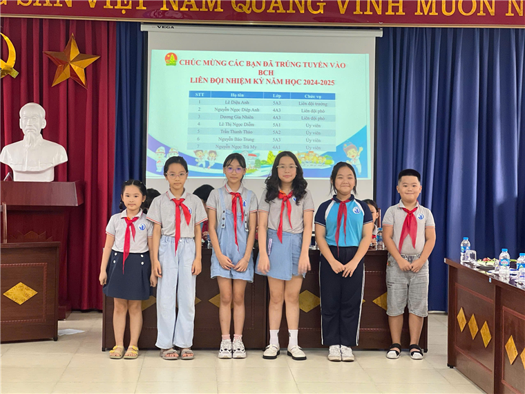 Một trong những nội dung quan trọng của Đại hội là bầu ra Ban Chỉ huy Liên đội mới. Với tinh thần dân chủ, công bằng và minh bạch, Đại hội đã tiến hành bầu cử và chọn ra được 7 em đội viên ưu tú vào Ban chỉ huy Liên đội năm học 2024-2025 để đảm nhận những nhiệm vụ quan trọng mà nhà trường và Liên đội giao cho. Ban chỉ huy Liên đội mới với sự nhiệt huyết, năng động và sáng tạo hứa hẹn sẽ mang đến nhiều hoạt động bổ ích, thú vị và thành tích cao cho Liên đội trong năm học này.