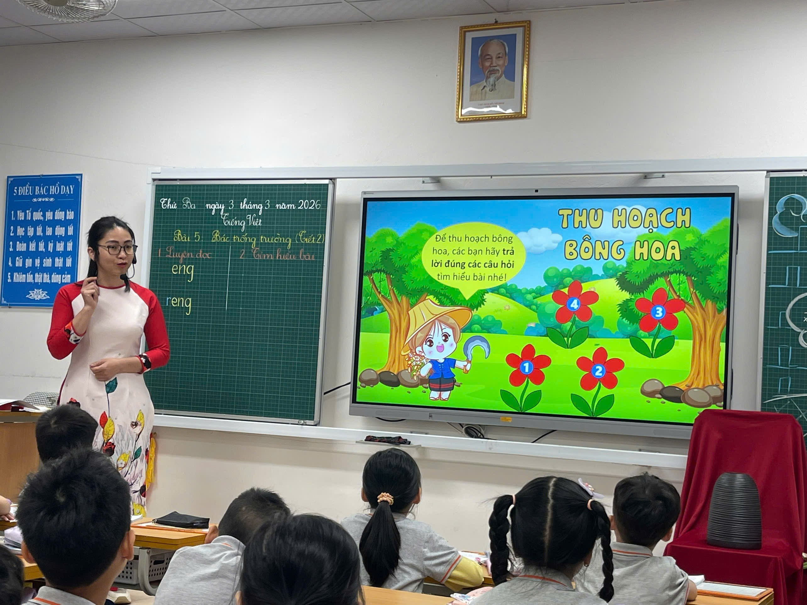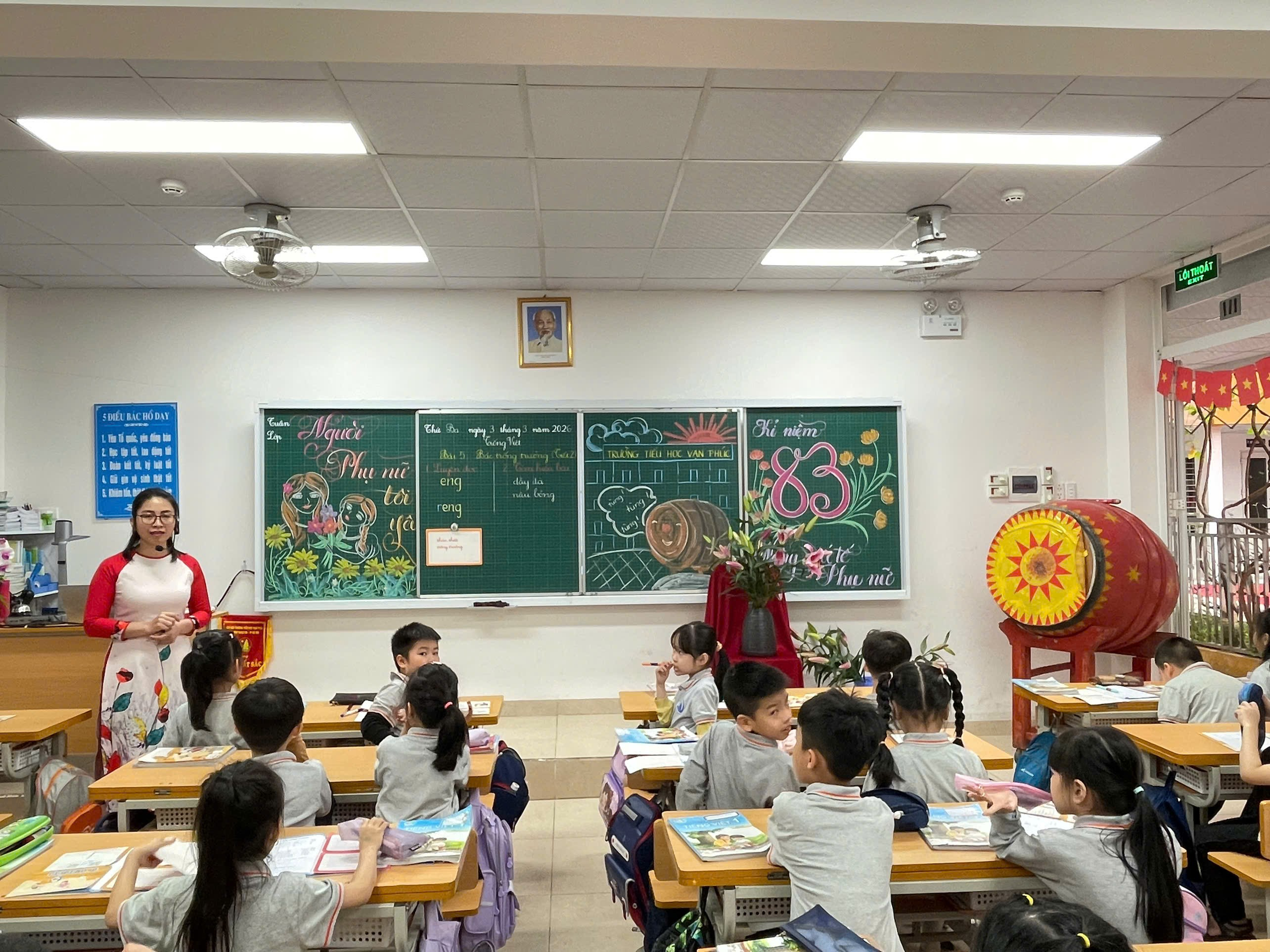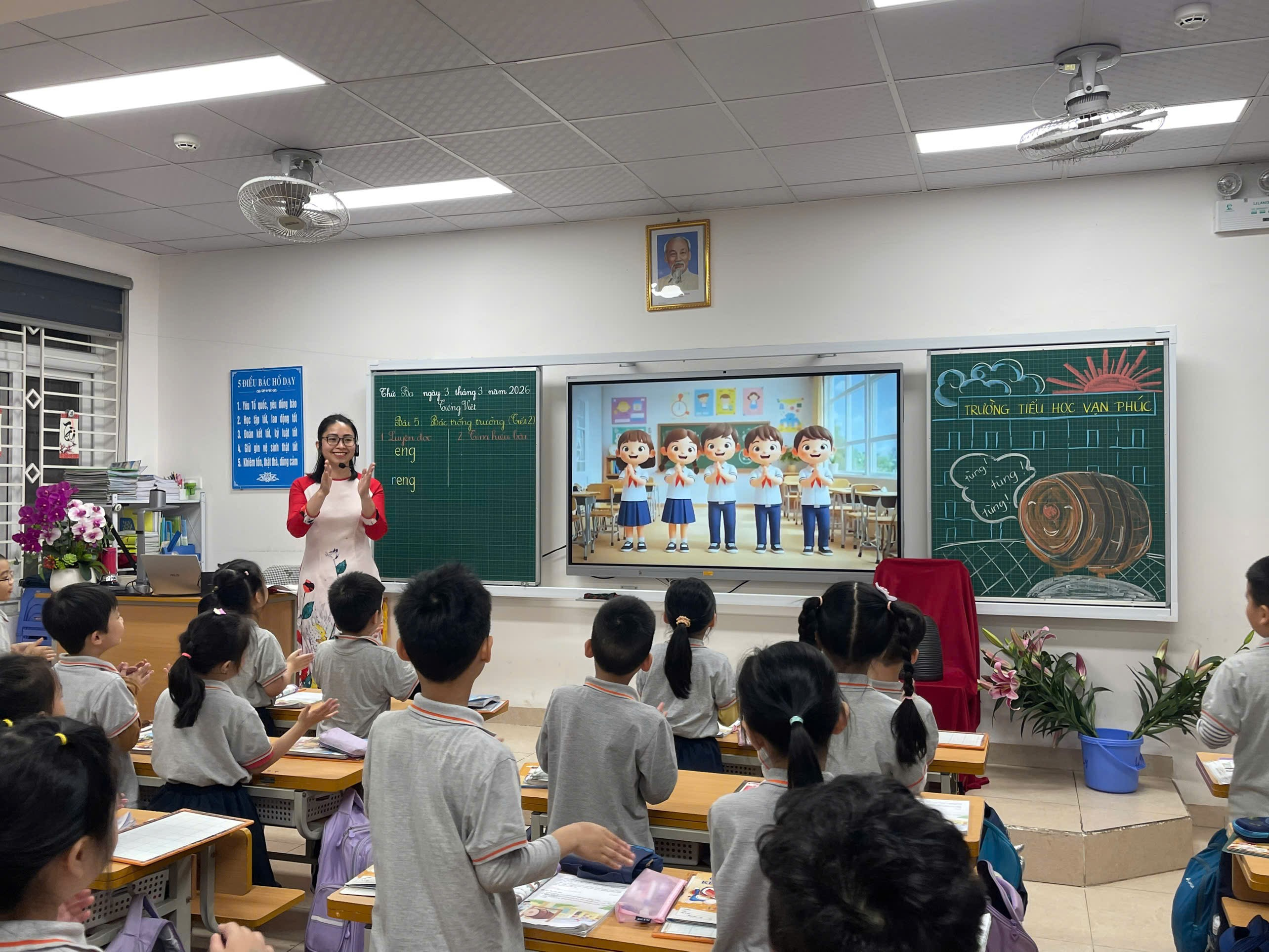 Giữa những ngày tháng Ba rộn ràng thi đua dạy tốt – học tốt, tiết hội giảng Tiếng Việt lớp 1 của cô giáo Lưu Khánh Ly đã để lại nhiều ấn tượng đẹp trong lòng đồng nghiệp. Với bài học “Bác trống trường” (tiết 2), cô không chỉ mang đến một giờ dạy đúng chuẩn mực chuyên môn mà còn thổi vào lớp học những cảm xúc trong trẻo, dịu dàng – đúng với tâm hồn học sinh lớp Một.
