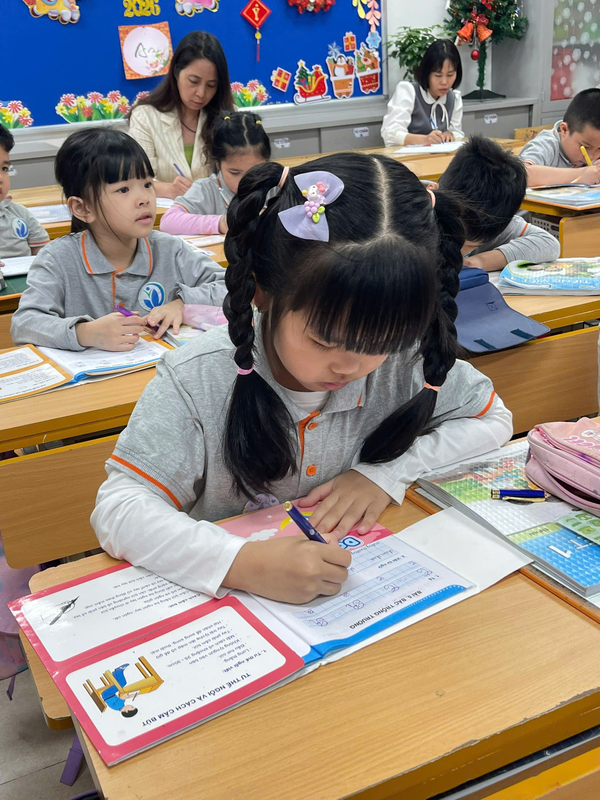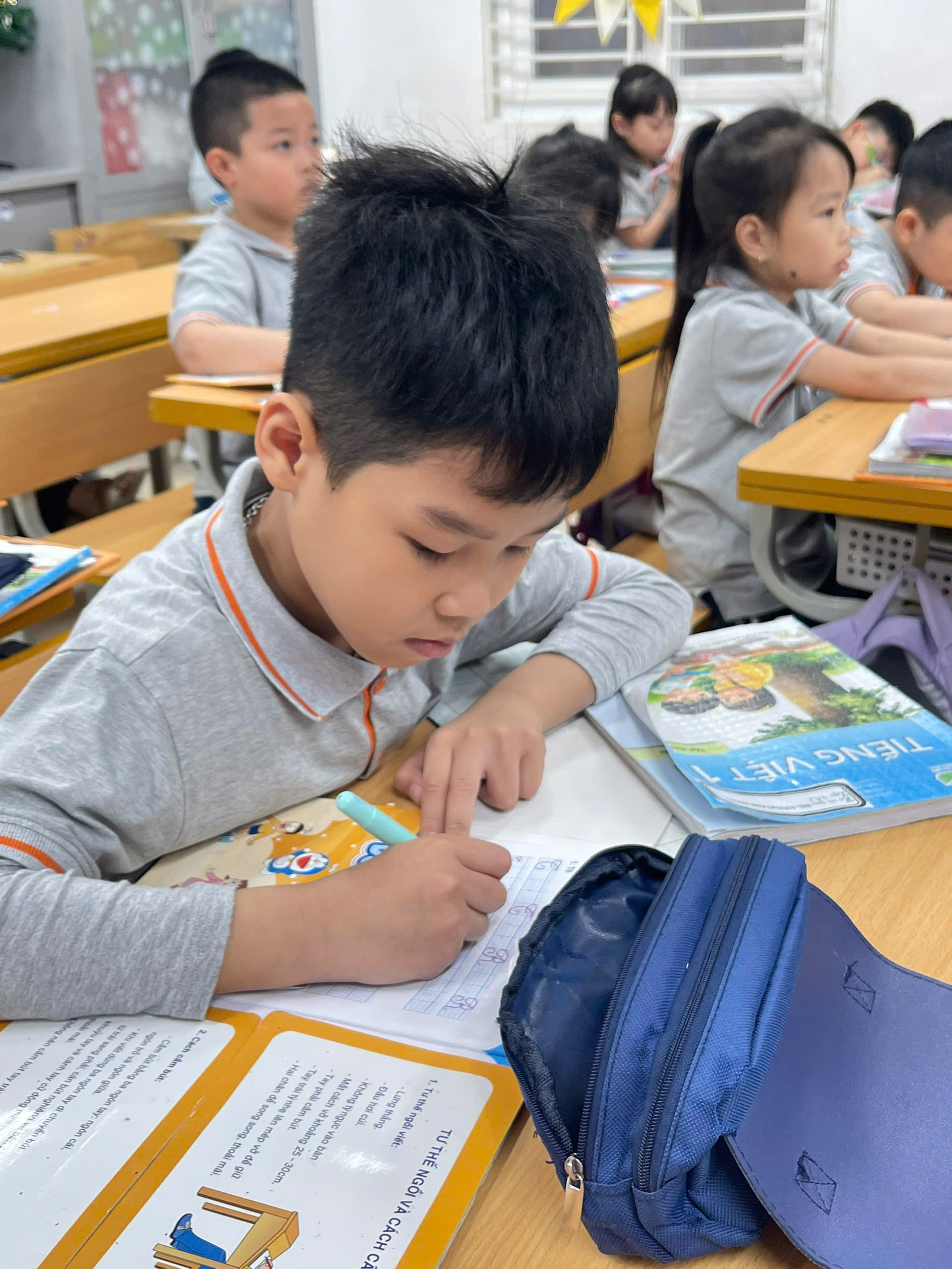 Những nét chữ còn vụng về nhưng đầy cố gắng đã thể hiện sự tiến bộ từng ngày của các em lớp Một. Hoạt động luyện viết không chỉ rèn kĩ năng mà còn giáo dục tính cẩn thận, kiên trì – những phẩm chất quan trọng ngay từ những năm học đầu tiên.