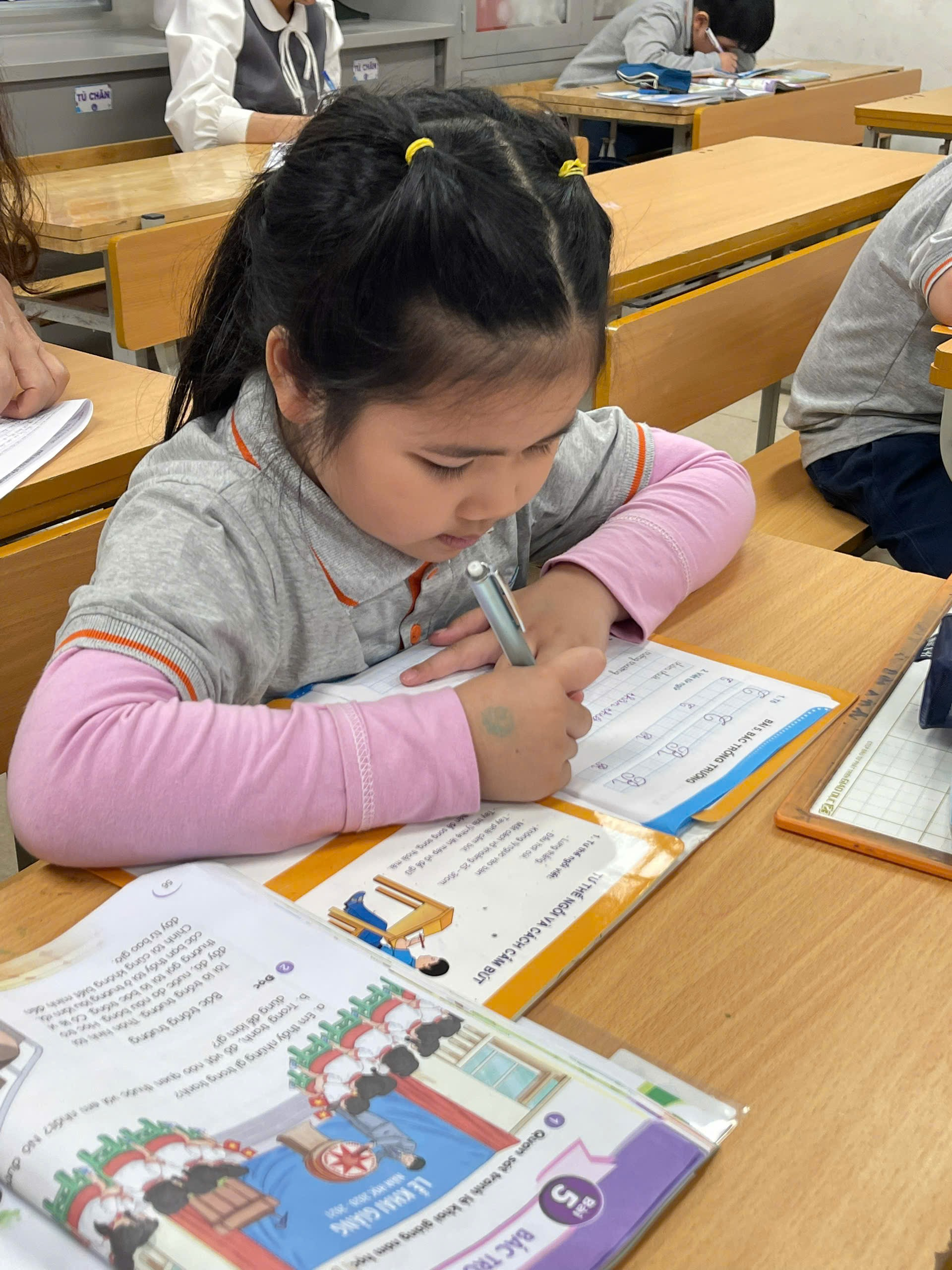 Học sinh luyện viết chăm chú trong vở