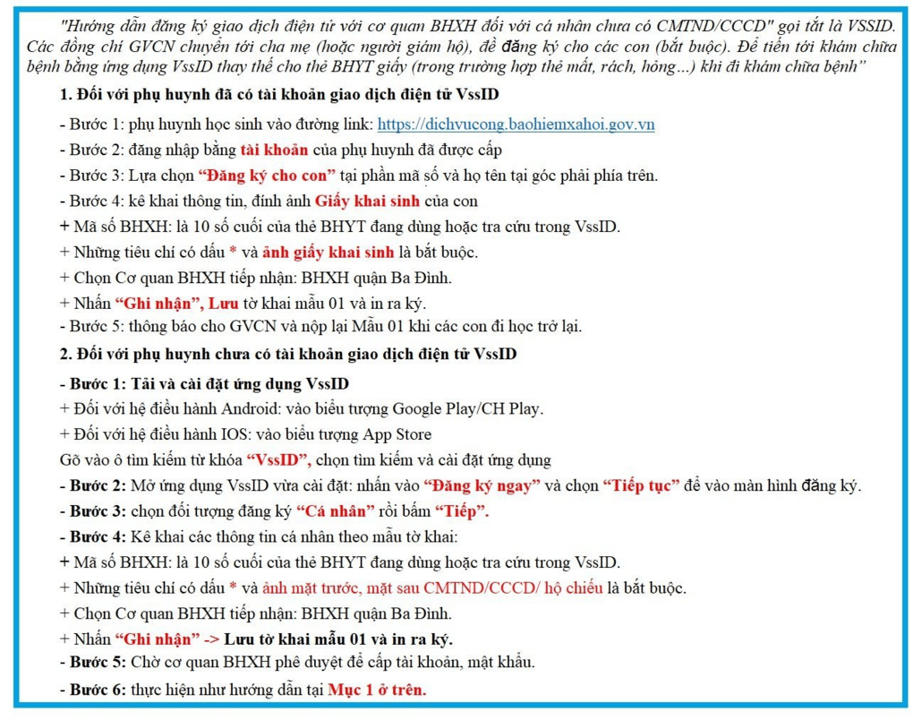 Trường Tiểu học Vạn Phúc cung cấp cho CHMS toàn trường Hướng dẫn cách cài đặt ứng dụng này để hướng tới việc khám chữa bệnh cho học sinh thay thế BHYT giấy.