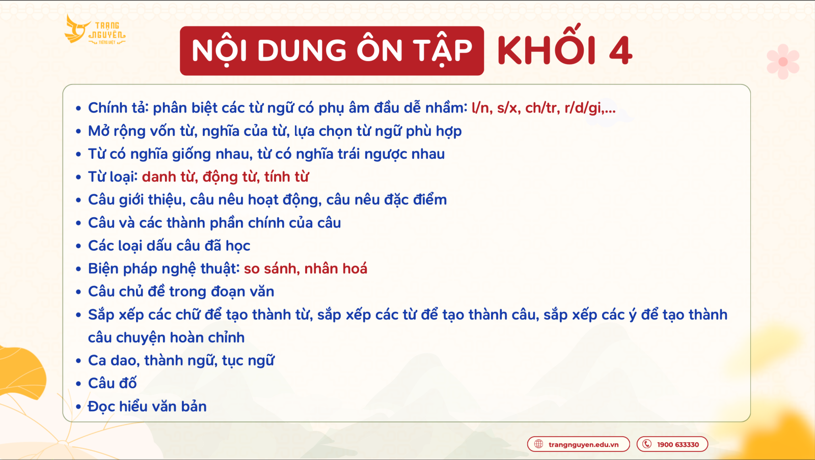 Nội dung ôn tập Kì thi Hội (cấp Thành phố) - Trạng Nguyên Tiếng Việt khối 4