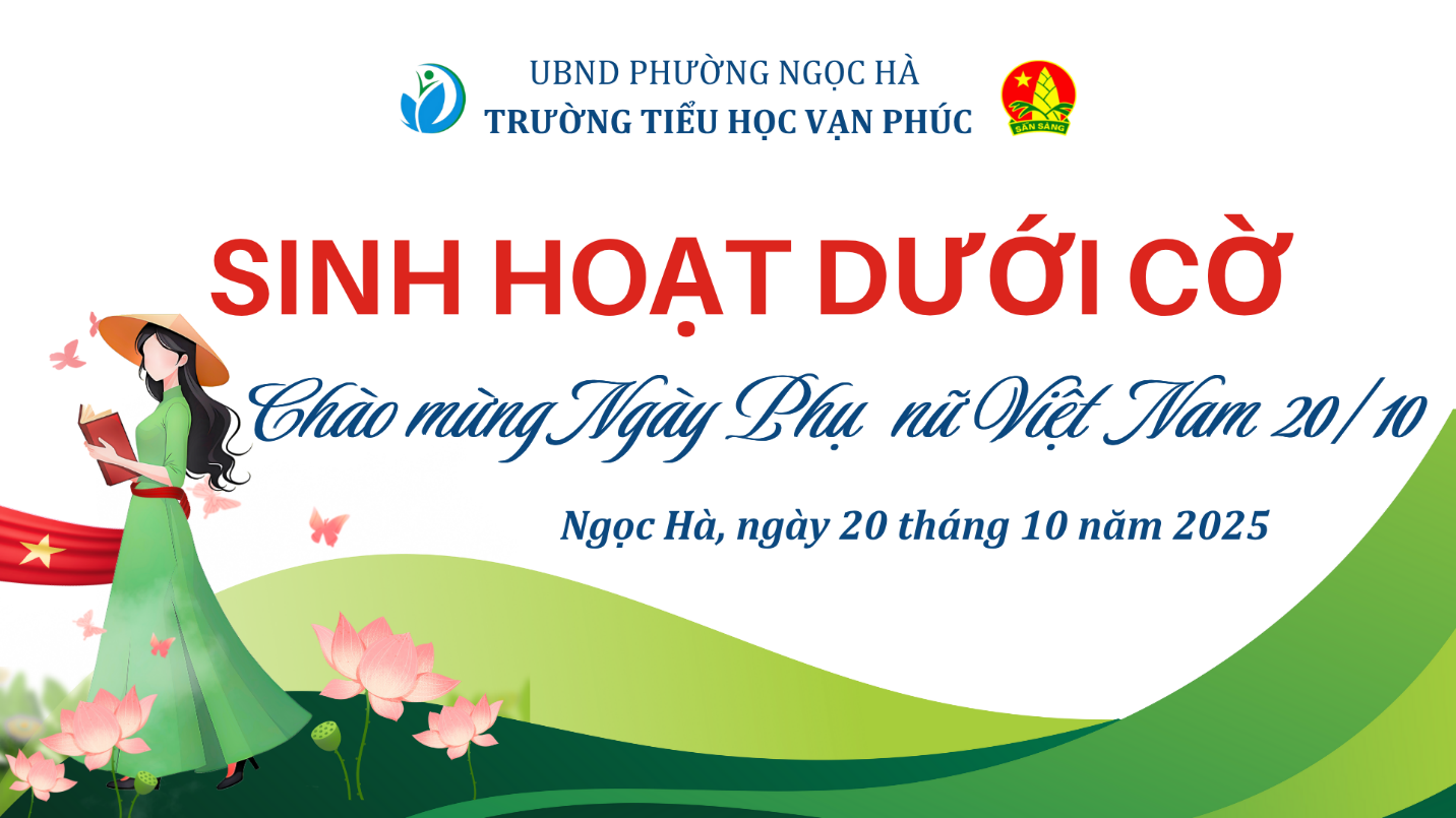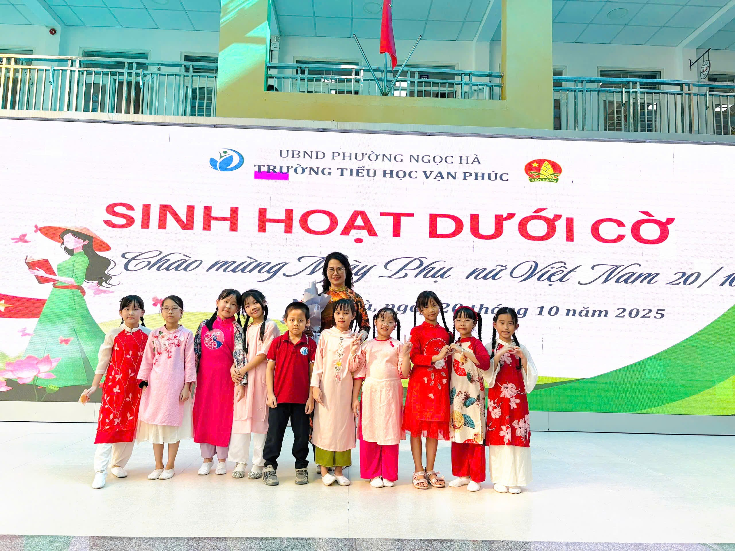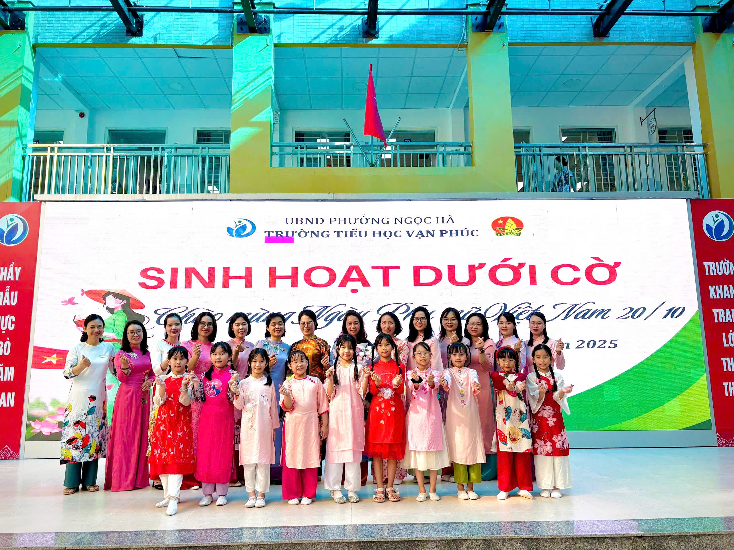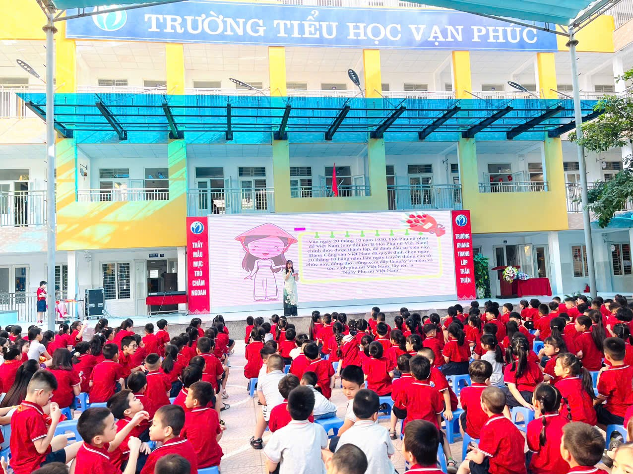 Sáng ngày 20 tháng 10, trong không khí vui tươi và rộn ràng của những ngày thu tháng Mười, thầy và trò Trường Tiểu học Vạn Phúc đã tổ chức buổi Sinh hoạt dưới cờ đặc biệt với chủ đề: “Chào mừng Ngày Phụ nữ Việt Nam 20/10” – nhằm tôn vinh và tri ân những người phụ nữ Việt Nam giàu đức hi sinh, đảm đang và nhân hậu.