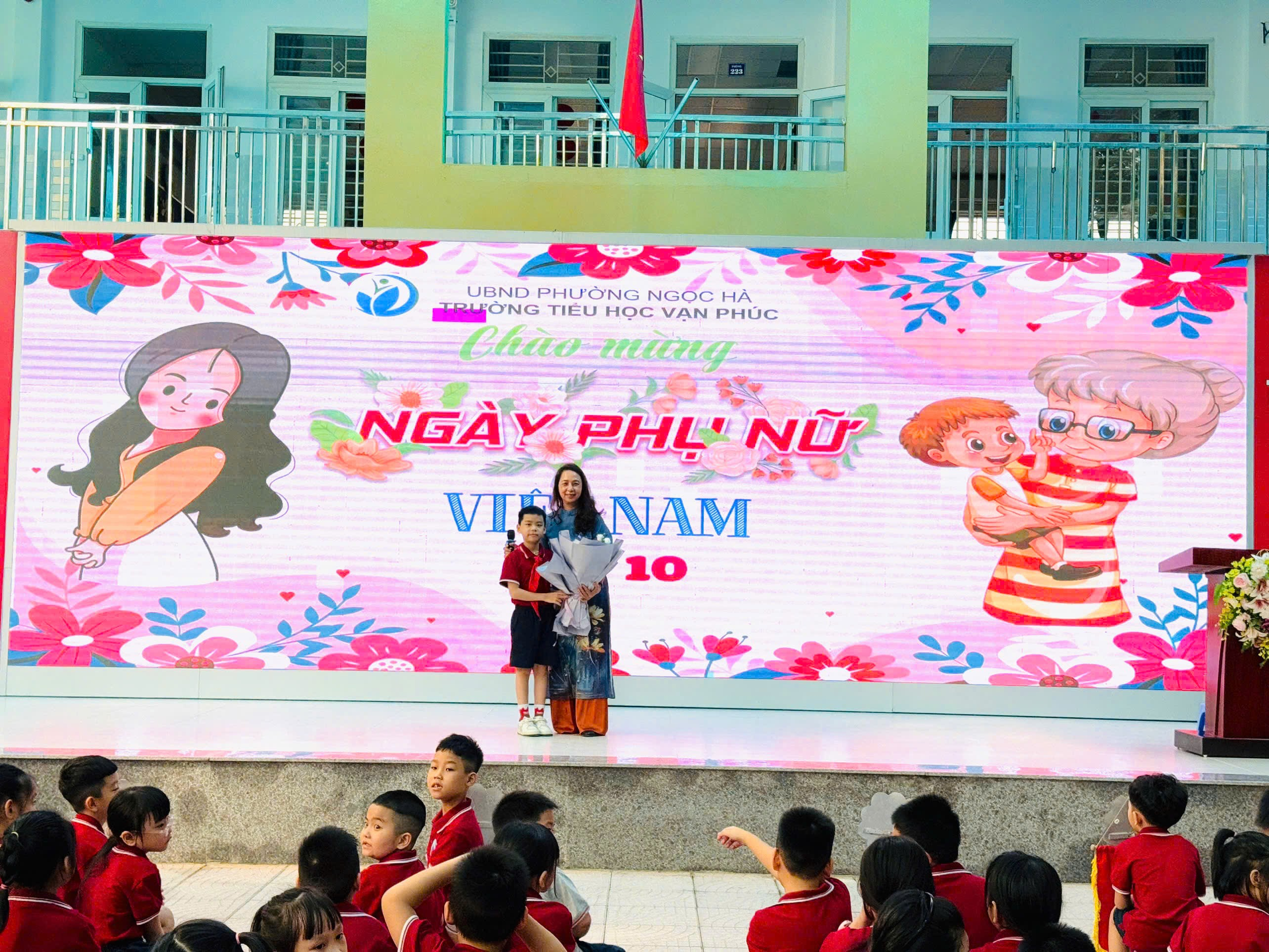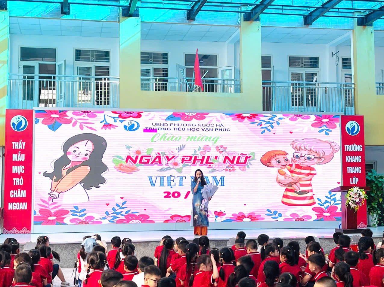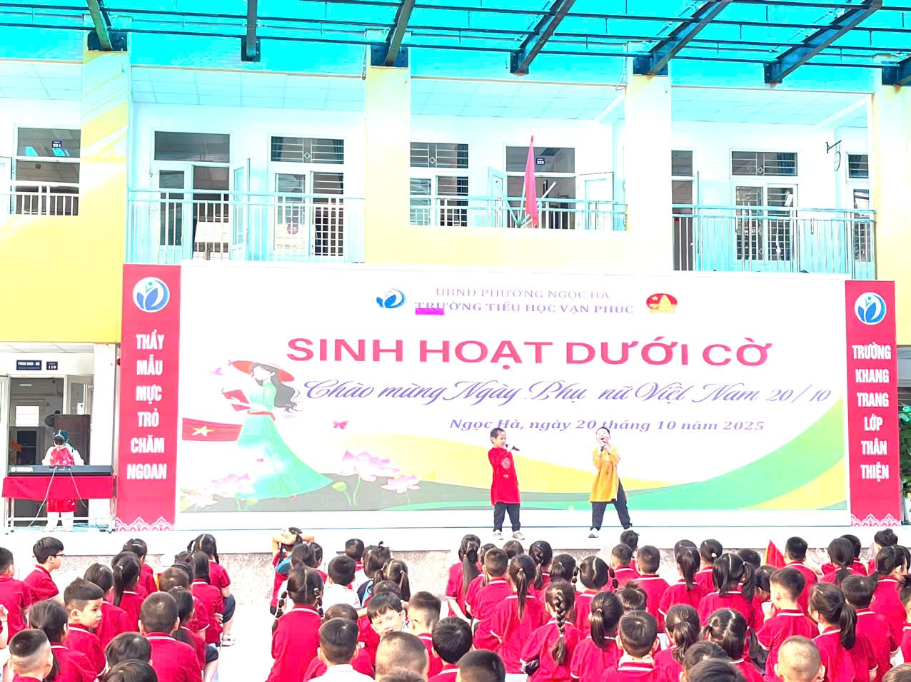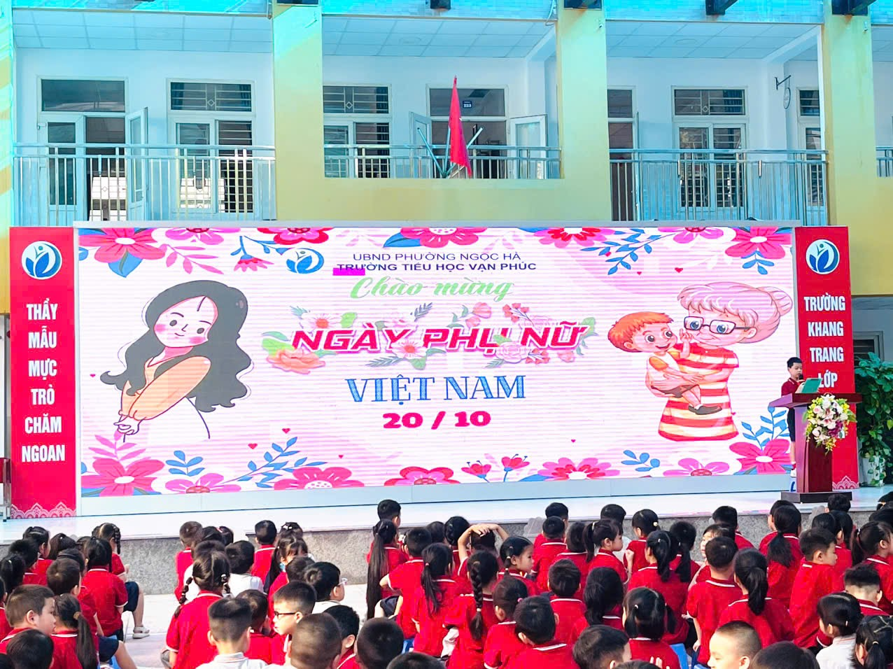 Sáng ngày 20 tháng 10, trong không khí vui tươi và rộn ràng của những ngày thu tháng Mười, thầy và trò Trường Tiểu học Vạn Phúc đã tổ chức buổi Sinh hoạt dưới cờ đặc biệt với chủ đề: “Chào mừng Ngày Phụ nữ Việt Nam 20/10” – nhằm tôn vinh và tri ân những người phụ nữ Việt Nam giàu đức hi sinh, đảm đang và nhân hậu.