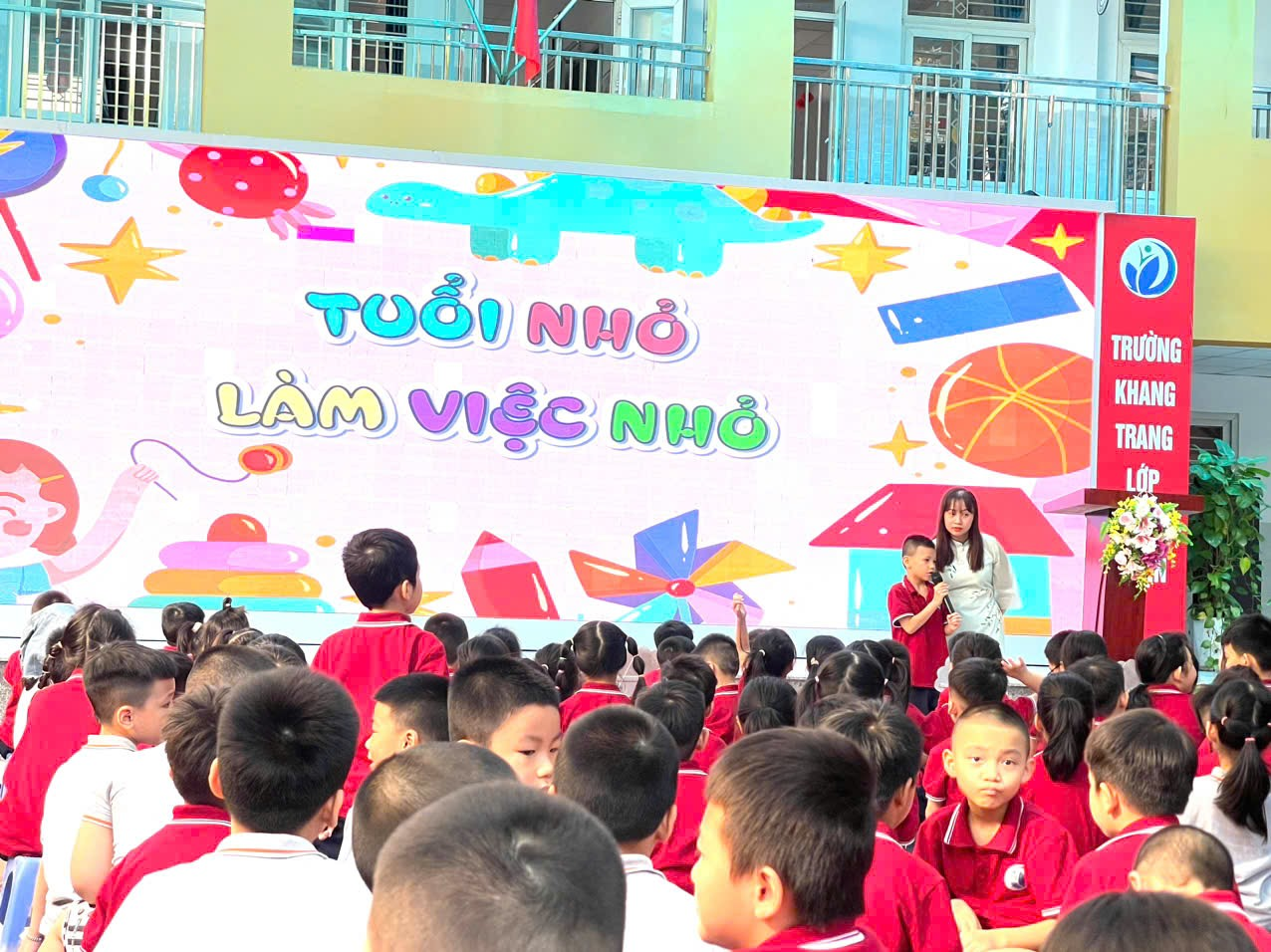 Xúc động trước tình cảm hồn nhiên, trong sáng của các em, cô Vũ Hương Lan - Hiệu trưởng nhà trường đã lên phát biểu cảm ơn những tình cảm đáng quý mà học sinh dành tặng cho các cô giáo. Cô gửi lời chúc mừng nồng nhiệt đến toàn thể nữ cán bộ, giáo viên, nhân viên và các bạn học sinh nữ trong trường, chúc các cô luôn mạnh khỏe, hạnh phúc, tiếp tục cống hiến cho sự nghiệp giáo dục; chúc các em học sinh chăm ngoan, học giỏi, biết yêu thương, kính trọng và sẻ chia. Những lời chúc ấm áp của cô như lan tỏa thêm tinh thần yêu thương và niềm vui trong ngày đặc biệt này.