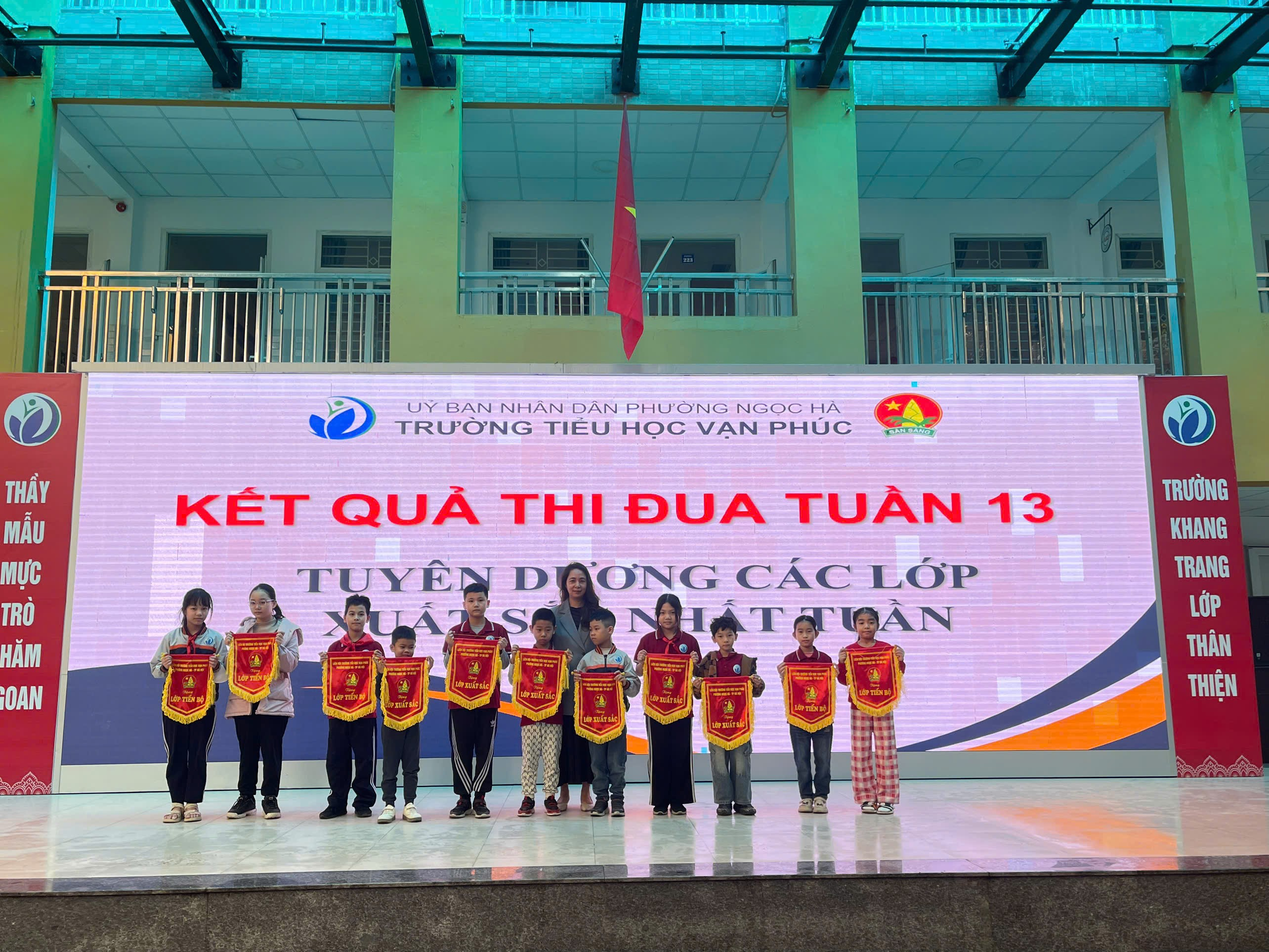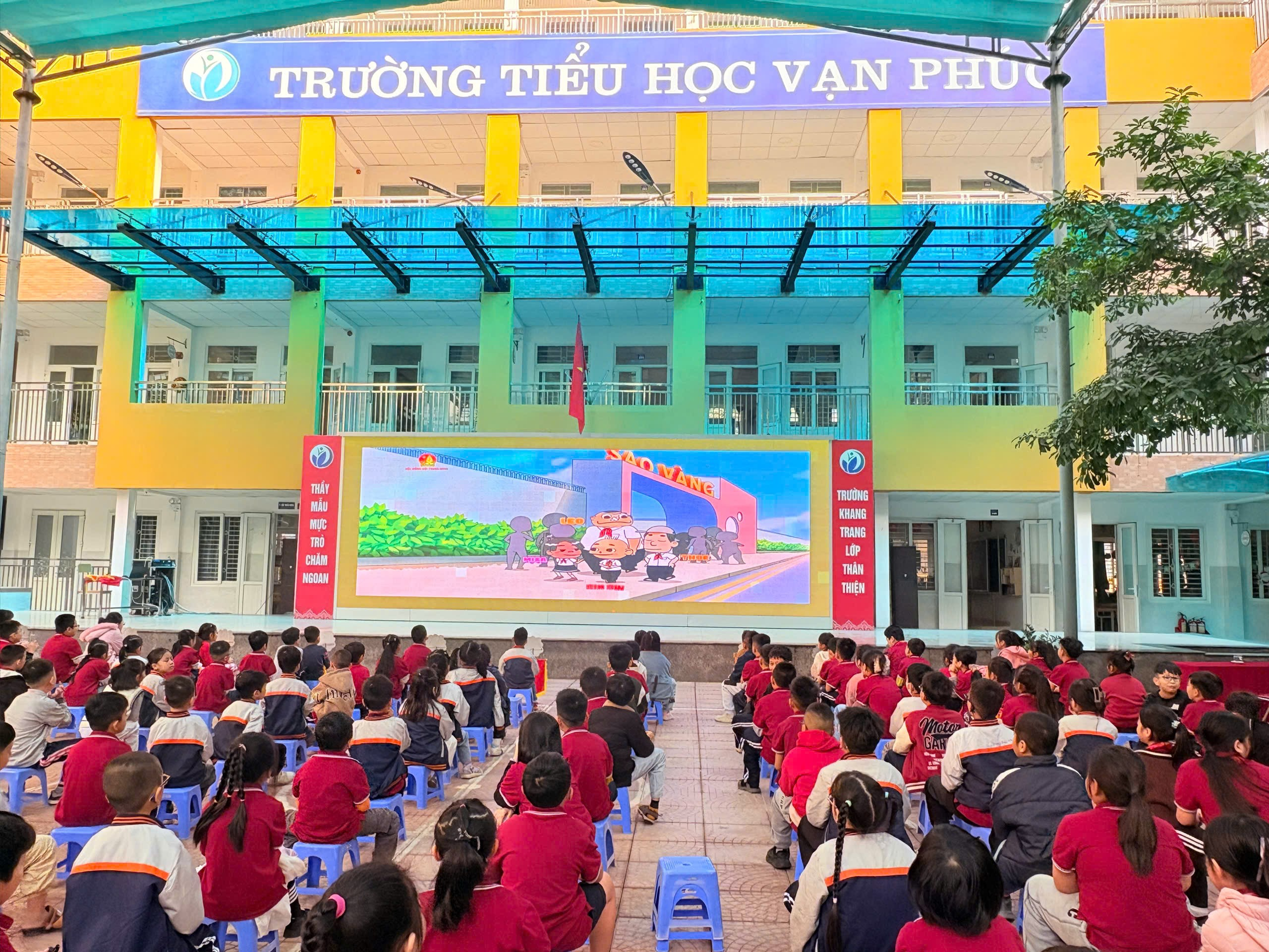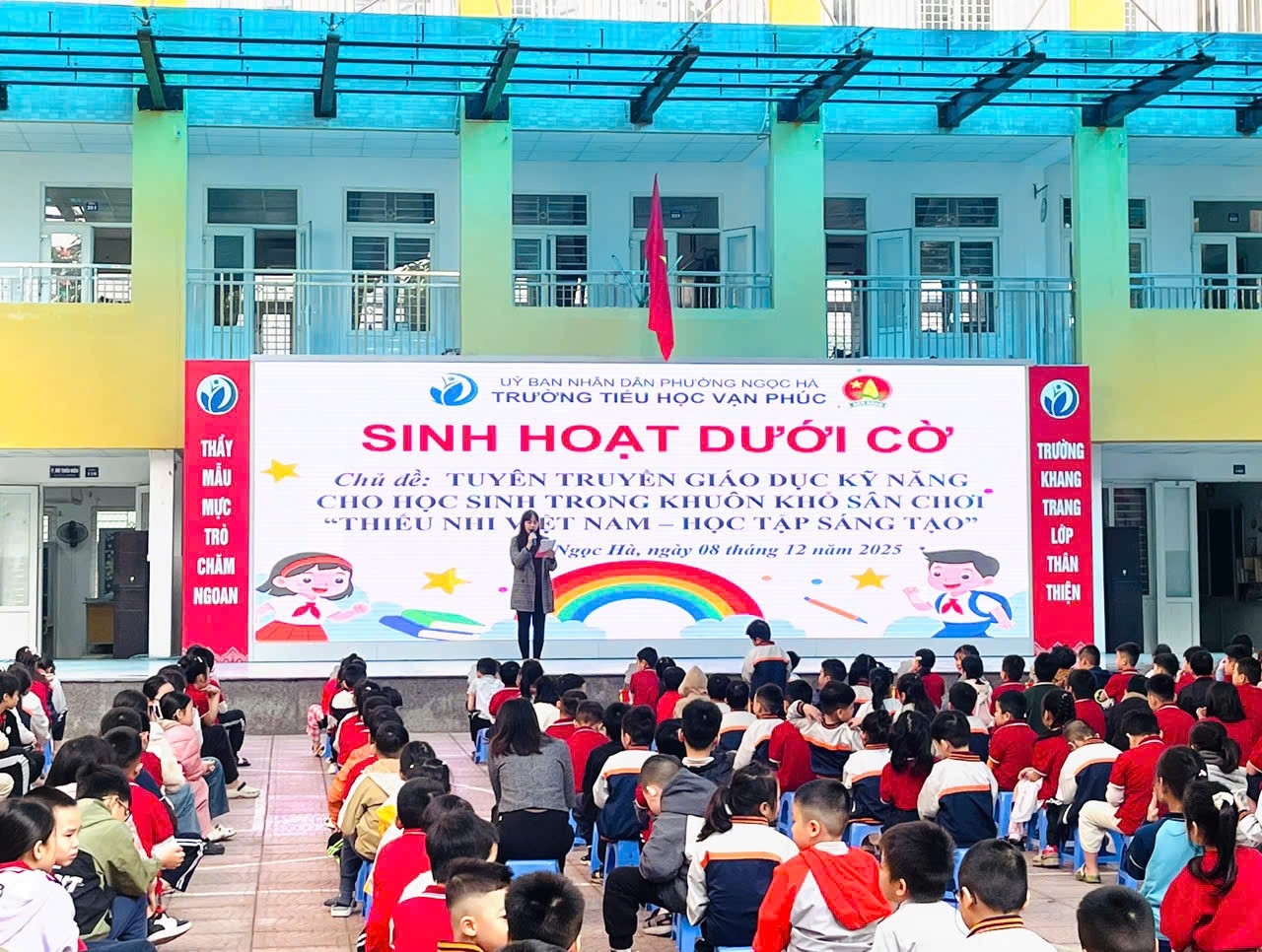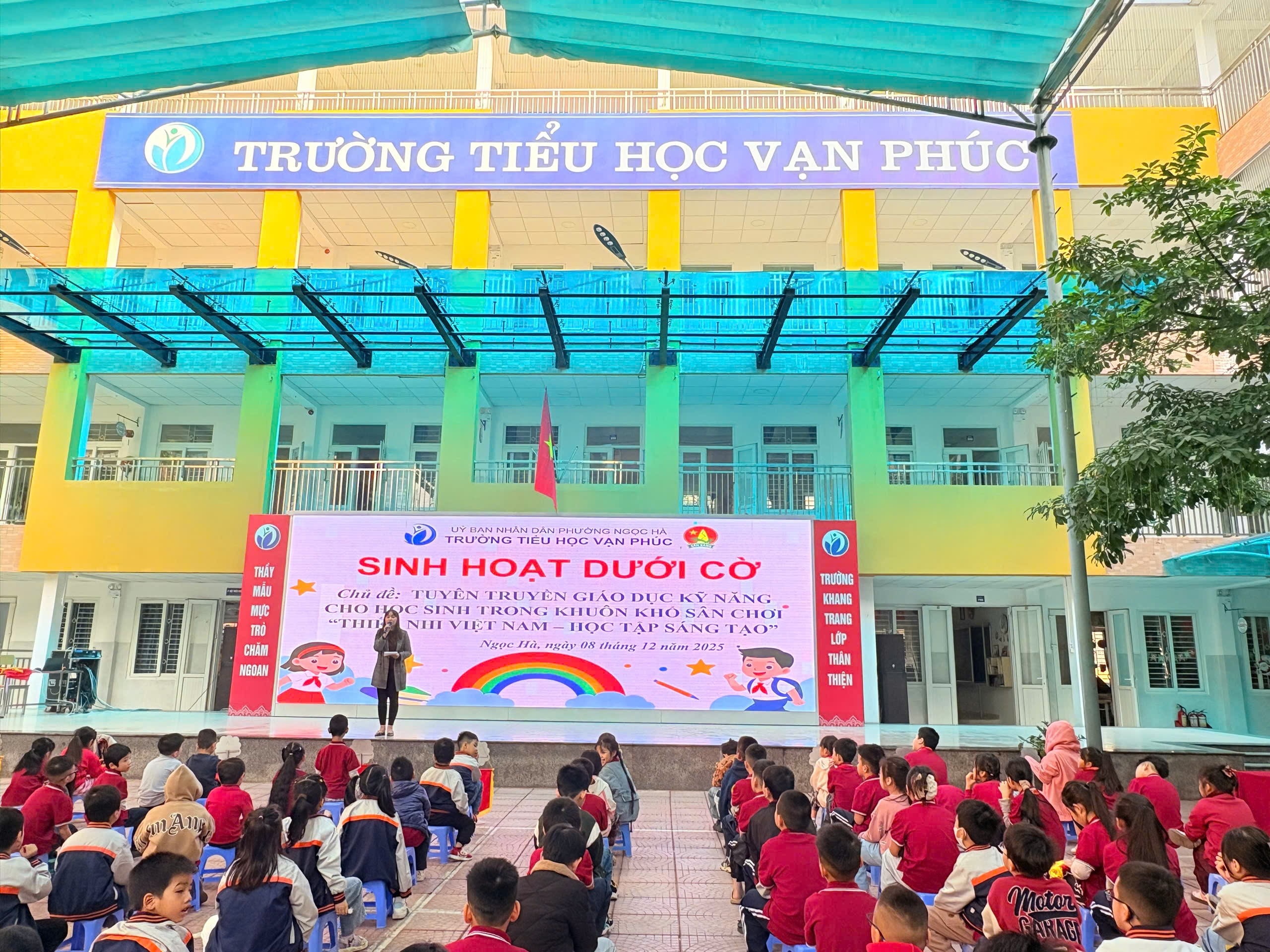 Sáng thứ Hai (08/12/2025), trong không khí vui tươi đầu tuần, Liên đội Trường Tiểu học Vạn Phúc đã tổ chức tiết Sinh hoạt dưới cờ với chủ đề “Thiếu nhi Việt Nam – Học tập sáng tạo”. Đây là hoạt động nhằm giáo dục kỹ năng sống, rèn luyện tinh thần chủ động - sáng tạo cho học sinh, đồng thời tuyên truyền những kiến thức bổ ích để các em tự bảo vệ bản thân trong cuộc sống hàng ngày.