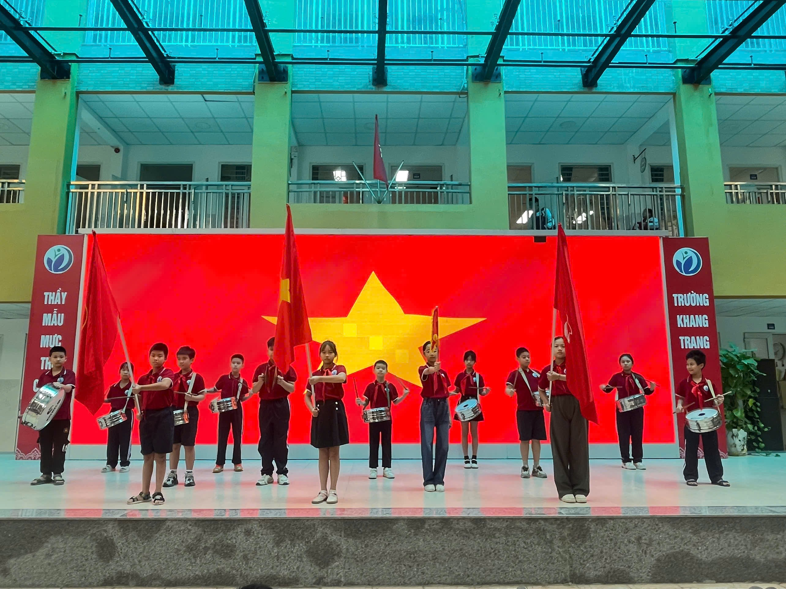 Mở đầu buổi sinh hoạt là phần chào cờ trang nghiêm, tiếng hát Quốc ca, Đội ca vang lên đầy tự hào, tiếp thêm năng lượng tích cực để các em bước vào tuần học mới.