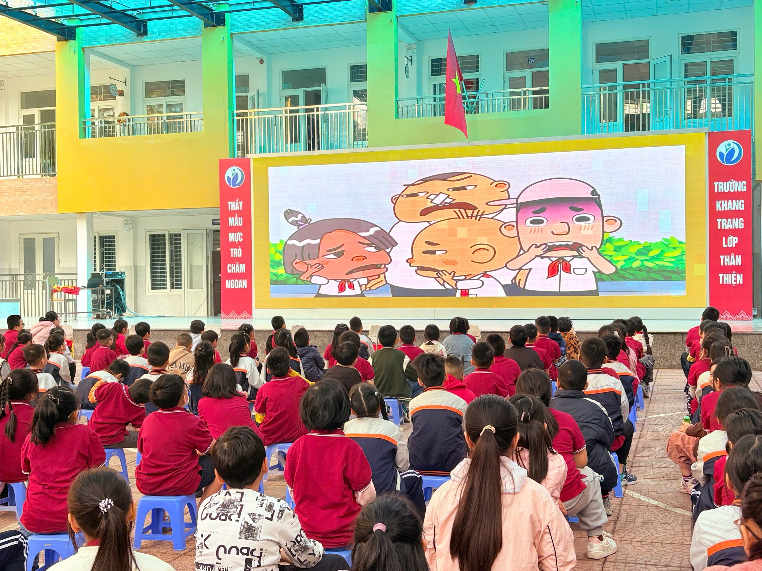 Các em học sinh chăm chú theo dõi, mạnh dạn chia sẻ lại những điều đã học. Nhiều em khẳng định: “Khi gặp người lạ, con sẽ nói ‘Không!’ và tìm đến thầy cô hoặc bố mẹ.” Những phản hồi hồn nhiên nhưng ý thức rõ ràng cho thấy hiệu quả thiết thực của hoạt động.