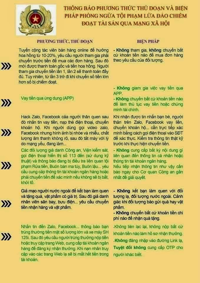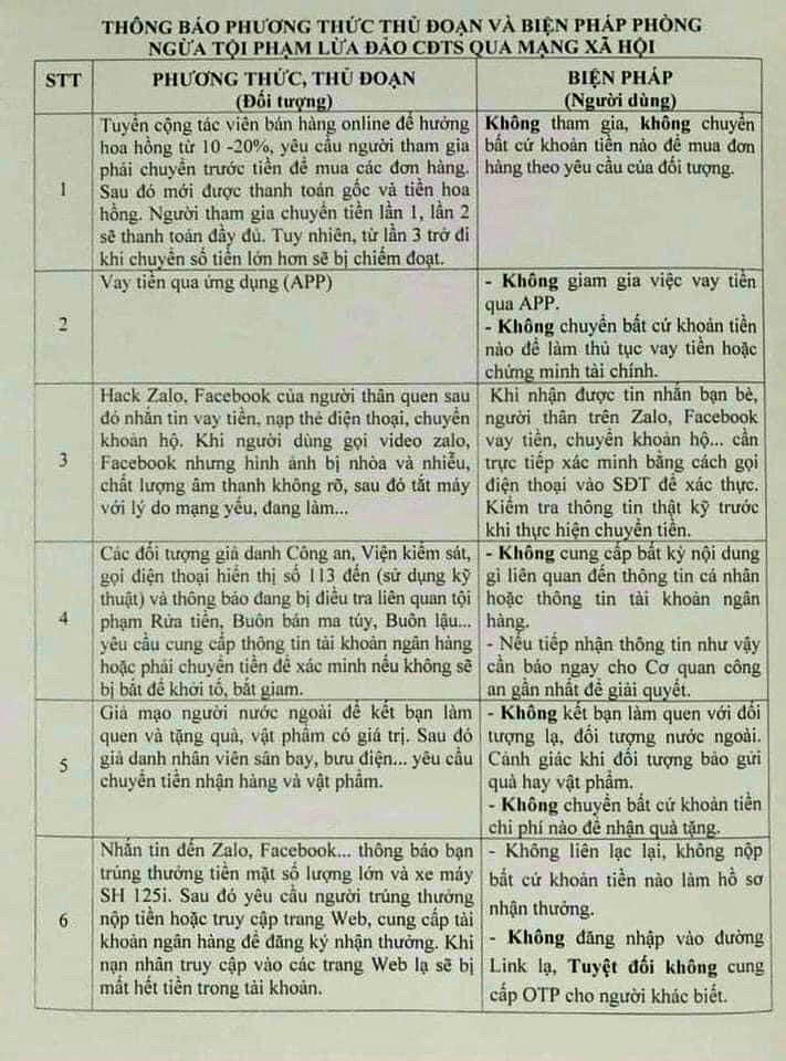 Thông báo phương thức thủ đoạn và biện pháp phòng ngừa tội phạm lừa đảo chiếm đoạt tài sản qua mạng xa hội