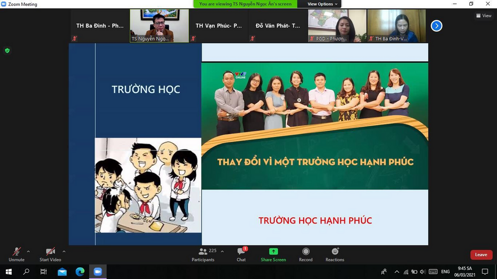 Lớp học do Tiến sĩ Nguyễn Ngọc Ân - Phó Chủ tịch Công đoàn Giáo dục Việt Nam giảng dạy và chia sẻ đã thu hút gần 500 cán bộ, giáo viên, nhân viên khối Tiểu học tham gia qua phòng họp Zoom.