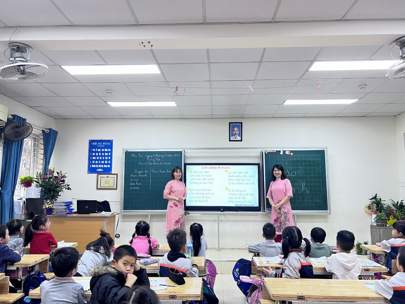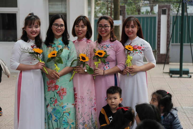 Các cô giáo đứng lớp với tà áo dài thướt tha