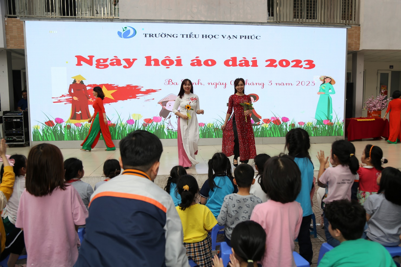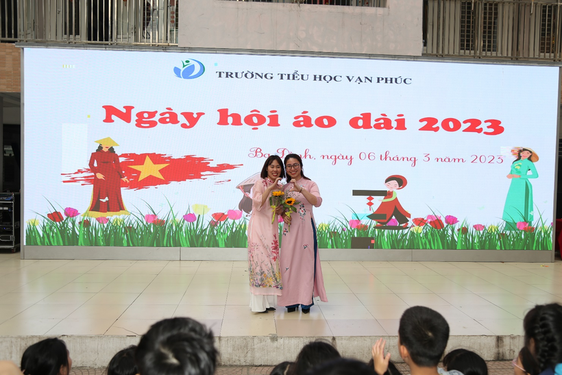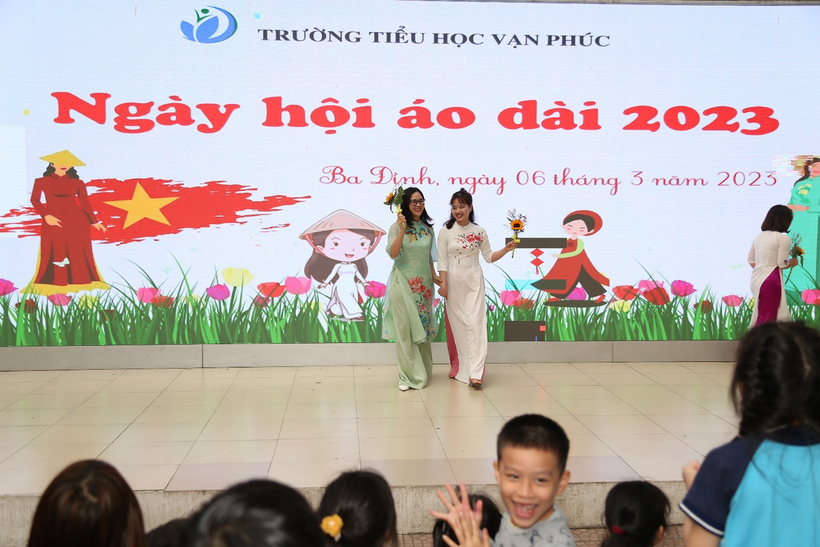 Nhân dịp này, giáo viên trường Tiểu học Vạn Phúc tổ chức trình diễn thời trang áo dài cho các cô giáo. Các cô ai cũng rạng rỡ, kiêu hãnh trong tà áo dài qua từng bước đi nhẹ nhàng, uyển chuyển. Hoạt động này nhằm tôn vinh các nét đẹp, giá trị của áo dài trong đời sống xã hội, khơi dậy niềm tự hào, trách nhiệm giữ gìn và phát huy di sản văn hóa Việt Nam trong mỗi cán bộ, phụ nữ và người dân, góp phần bảo tồn và phát huy các giá trị văn hóa truyền thống của trang phục dân tộc Việt Nam. Bởi trong quá khứ, hiện tại và tương lai, phụ nữ luôn là một phần không thể thiếu và mang đến những cống hiến to lớn cho xã hội.
