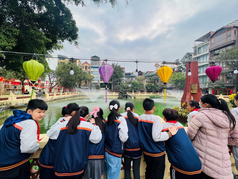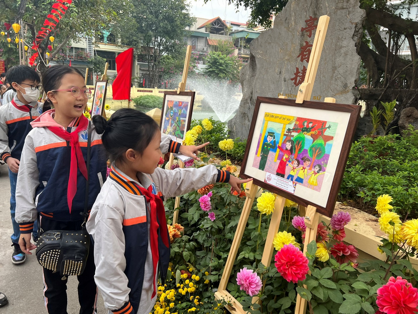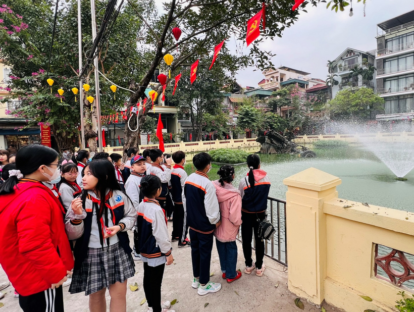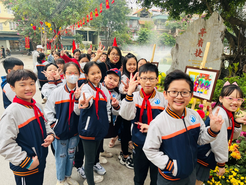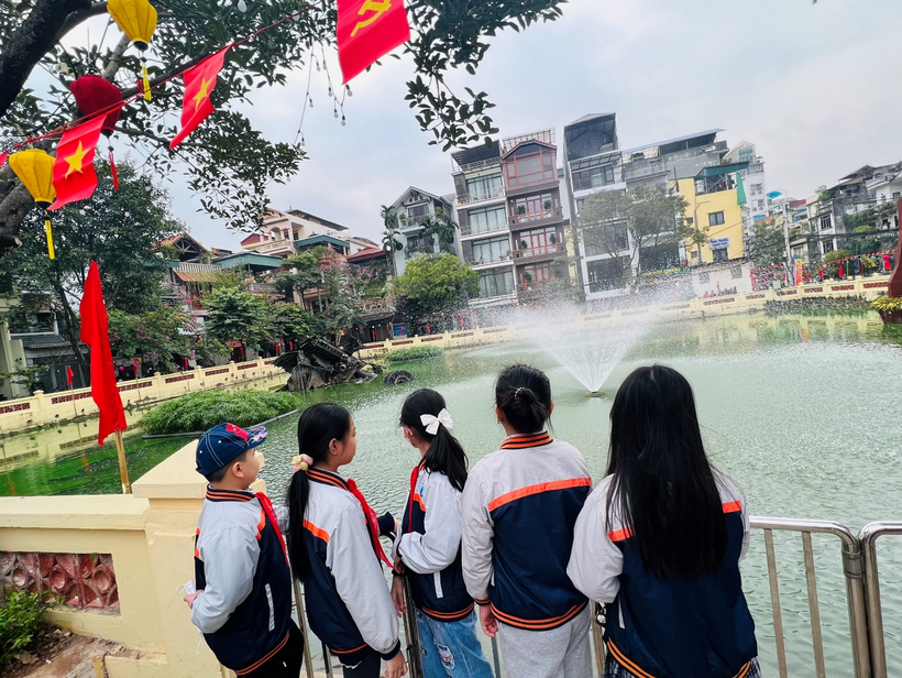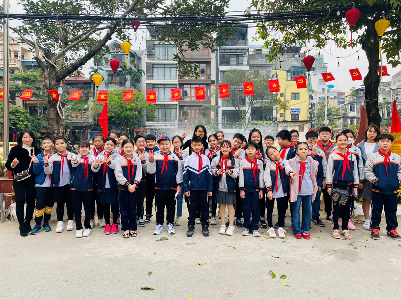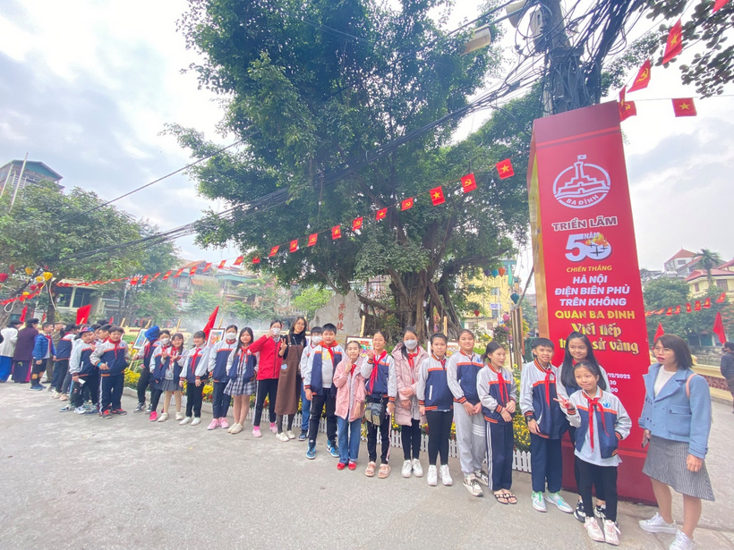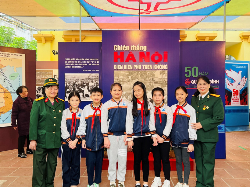 Đoàn tham quan gồm cô giáo Tổng phụ trách, cô giáo chủ nhiệm lớp 5A3, cô giáo thư viện và 30 em học sinh Khối lớp 5. Không khí hứng khởi hiện rõ lên khuôn mặt của các con học sinh trong chuyến đi tìm hiểu, khám phá và mở rộng kiến thức về Lịch sử địa phương, lịch sử Thủ đô. Đặc biệt, các em học sinh rất tự hào khi nhìn thấy bức tranh đạt giải Khuyến khích của em Phạm Thùy Chi lớp 3A3 trong cuộc thi vẽ tranh “Hà Nội – Điện Biên Phủ trên không” năm 2022 được trưng bày ở triển lãm.