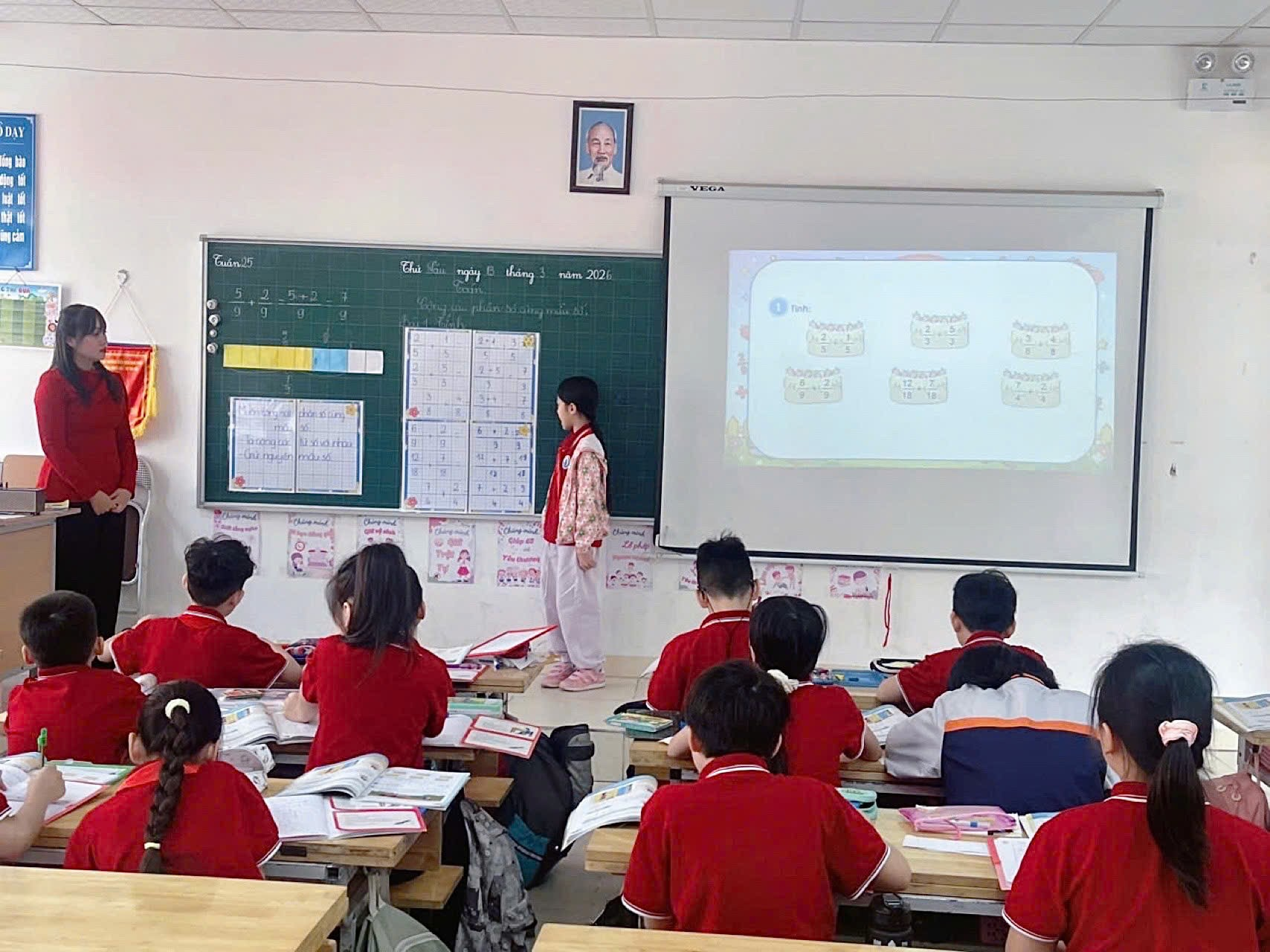 Tiết hội giảng của cô giáo Đoàn Hồng Vân không chỉ thể hiện sự chuẩn bị công phu, sáng tạo trong tổ chức hoạt động dạy học mà còn cho thấy hiệu quả của việc kết hợp công nghệ và các hình thức học tập đa dạng trong lớp học. Qua đó, bài học Toán trở nên sinh động, gần gũi hơn, góp phần khơi dậy niềm yêu thích học tập và phát triển năng lực cho học sinh.