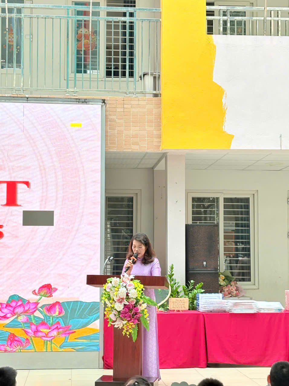 Trong không khí trang trọng với nhiều cung bậc cảm xúc của buổi lễ, cô giáo Phùng Tố Nga – Bí thư Chi bộ, Hiệu trưởng nhà trường đã tổng kết, đánh giá những kết quả mà thầy và trò nhà trường đã đạt được trong năm học 2024 – 2025.