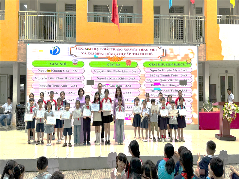 Về khen thưởng tập thể có 11 tập thể lớp Xuất sắc cùng 2 tập thể lớp Tốt. Trong các hội thi HS giỏi của tất cả các mặt giáo dục toàn diện, có 110 HS đã đạt giải trong các kỳ thi HS giỏi các cấp trong đó có: 1 giải Cấp Quốc gia thi Tiếng Anh Quốc tế, 25 giải Thành phố và 85 giải cấp Quận.