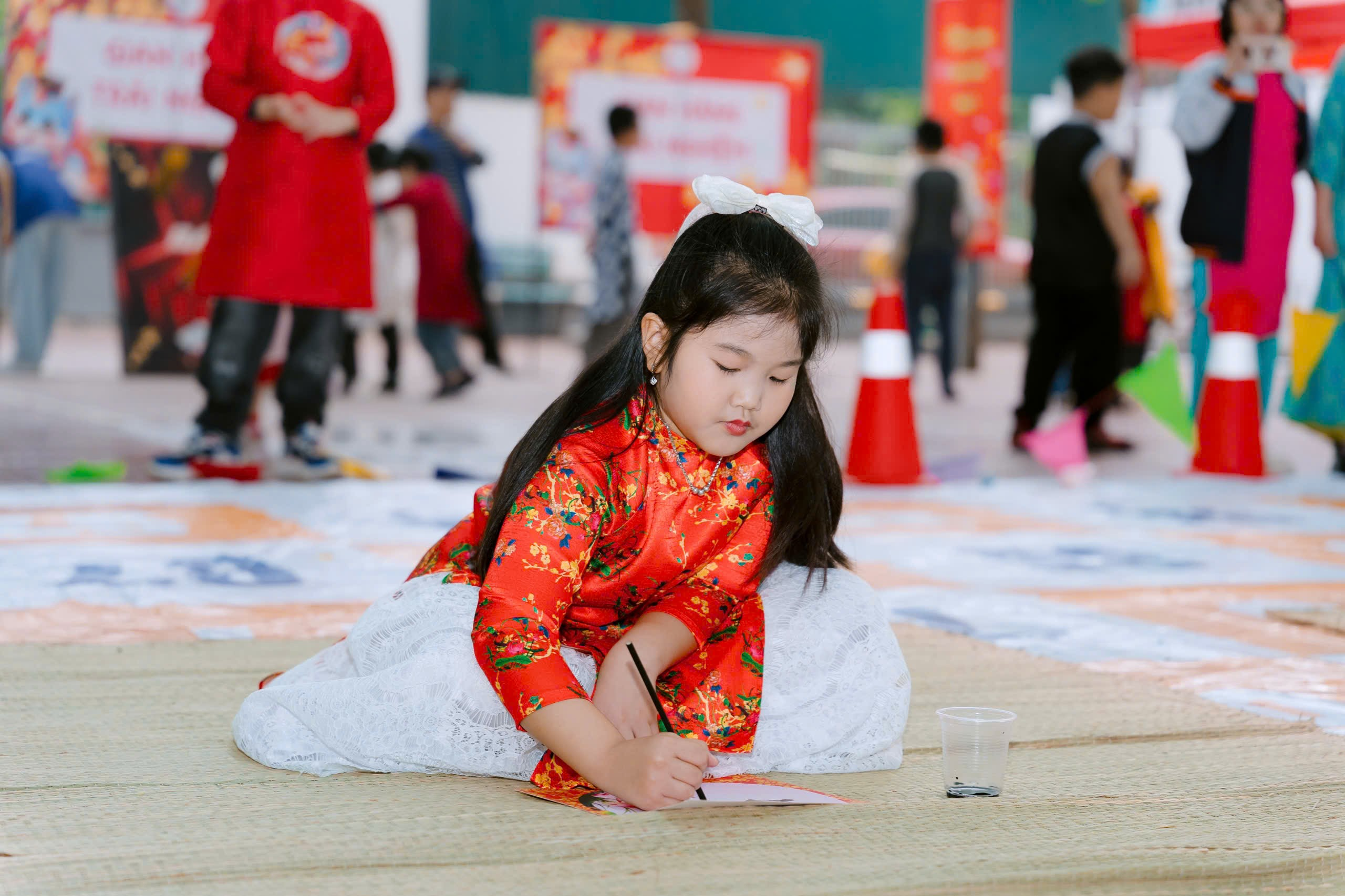 Không gian thư pháp đầu xuân mang lại khoảng lặng nhẹ nhàng và sâu sắc. Tại đây, học sinh lớp 4A3 được xin chữ và tập viết những nét bút đầu năm, gửi gắm mong ước về một năm học chăm ngoan, học giỏi và thành công.