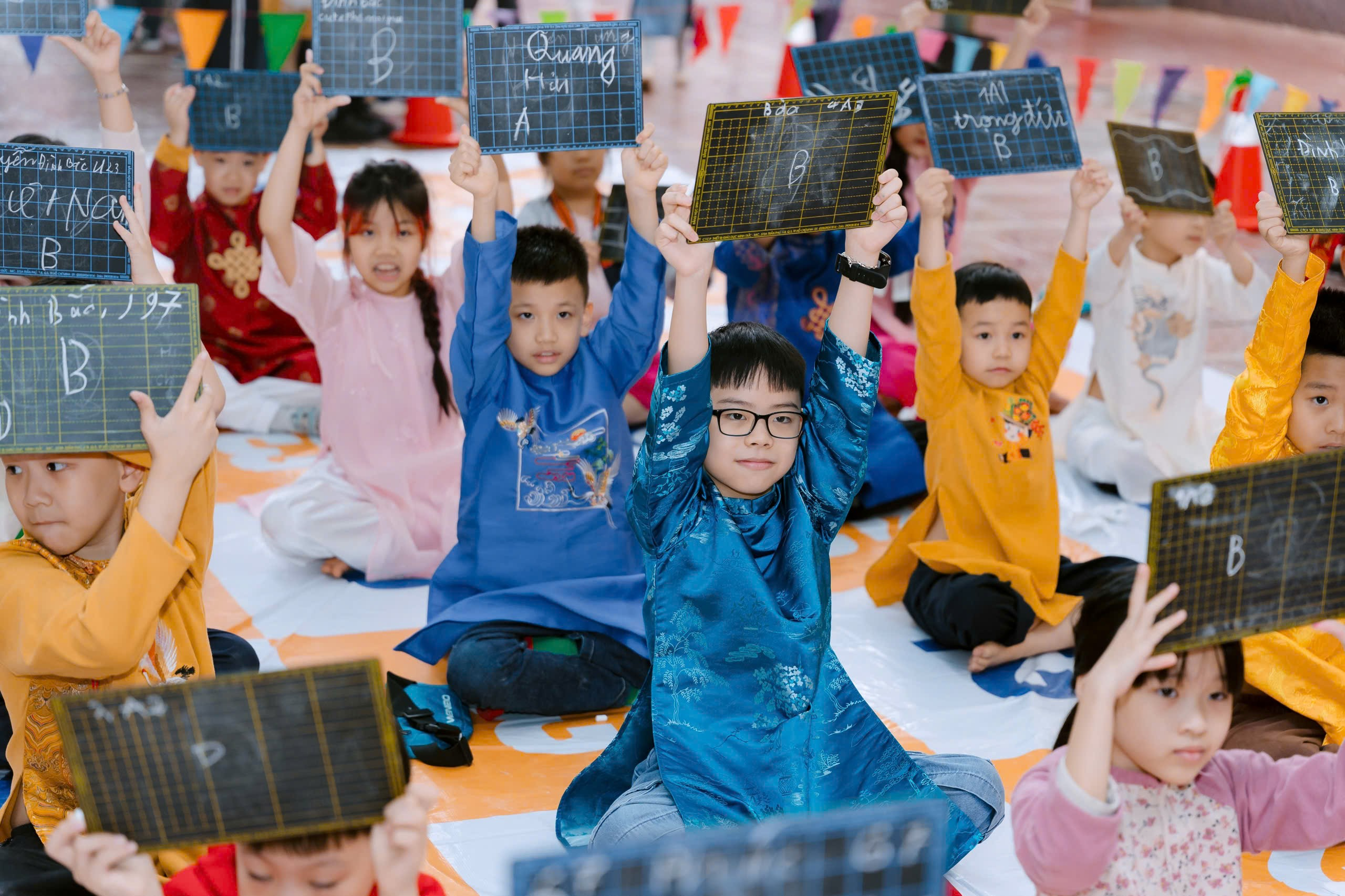 Bên cạnh những hoạt động nghệ thuật sôi động, phần thi “Rung chuông vàng – Tìm hiểu về Tết cổ truyền Việt Nam” đã mang đến sân chơi trí tuệ đầy hấp dẫn. Đại diện lớp 4A3 tham gia với tinh thần tự tin, bình tĩnh trả lời các câu hỏi về phong tục, tập quán và ý nghĩa của ngày Tết.