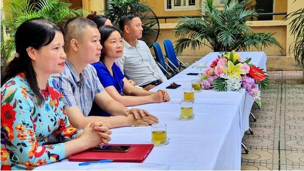 Ban giám hiệu Trường Tiểu học Vạn Phúc và Trường THCS Nguyễn Trãi chụp ảnh lưu niệm