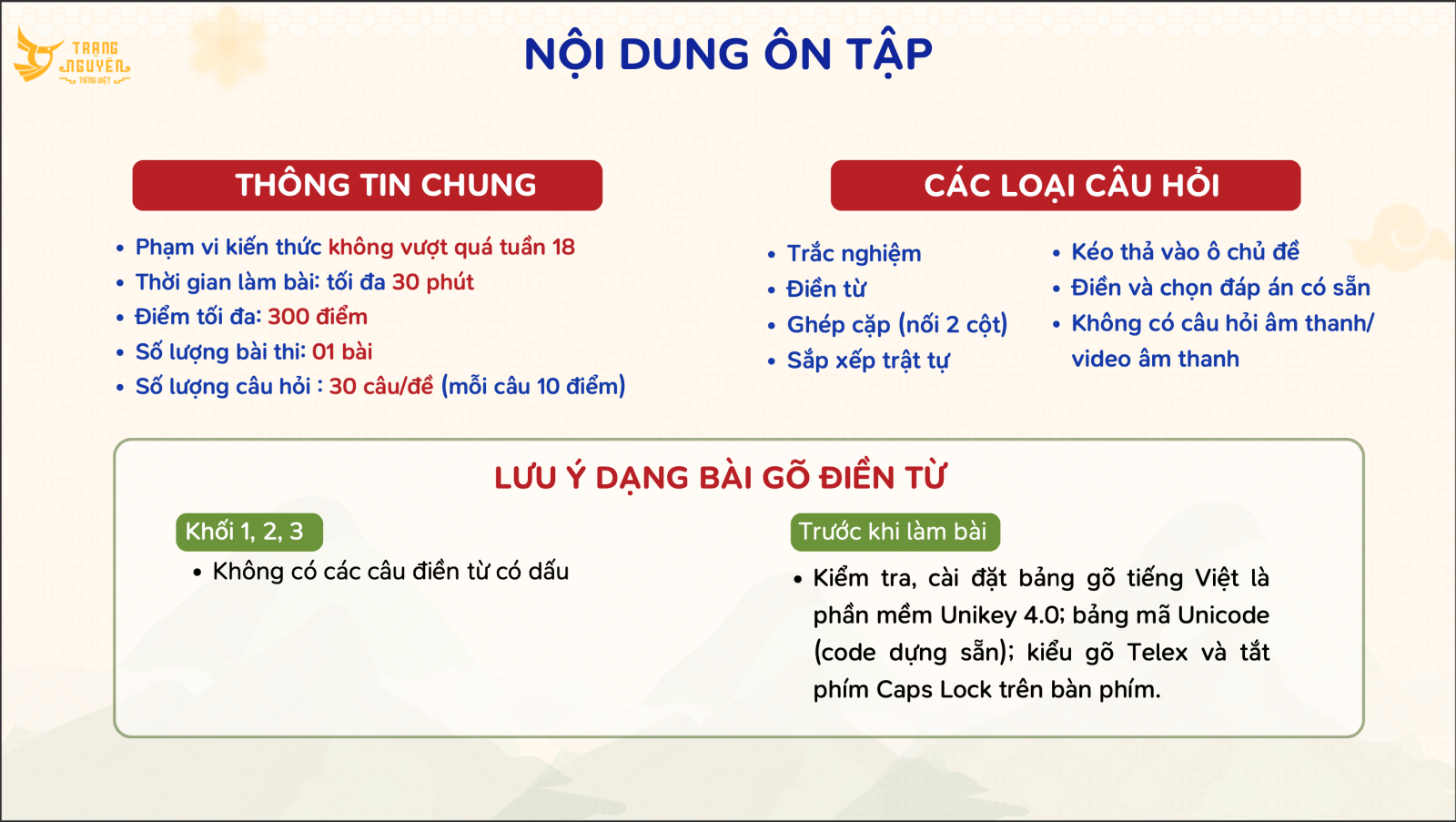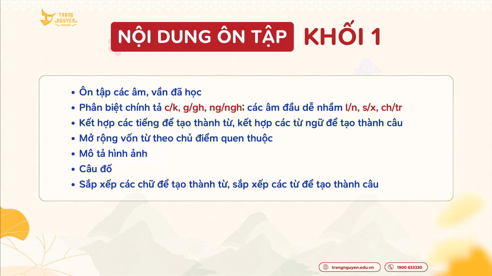 Nội dung ôn tập Kì thi Hương (cấp Quận) - Trạng Nguyên Tiếng Việt Khối 1